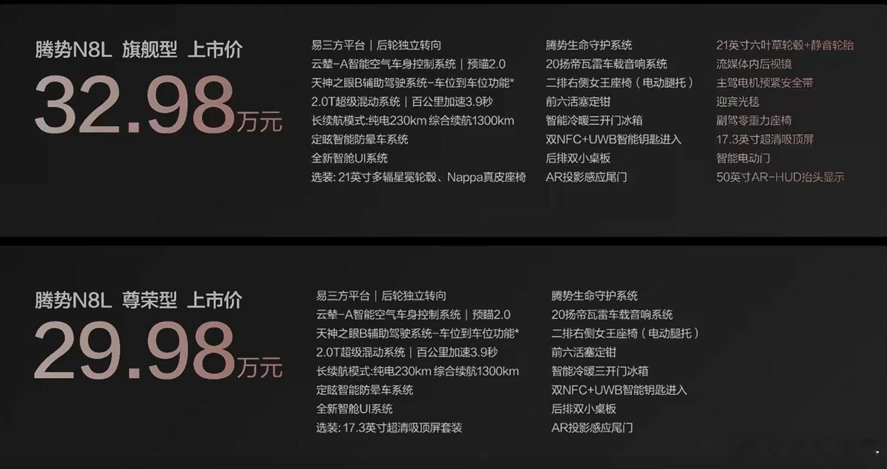 腾势N8L售价29.98万和32.98万,基本上是断了N9的路?!