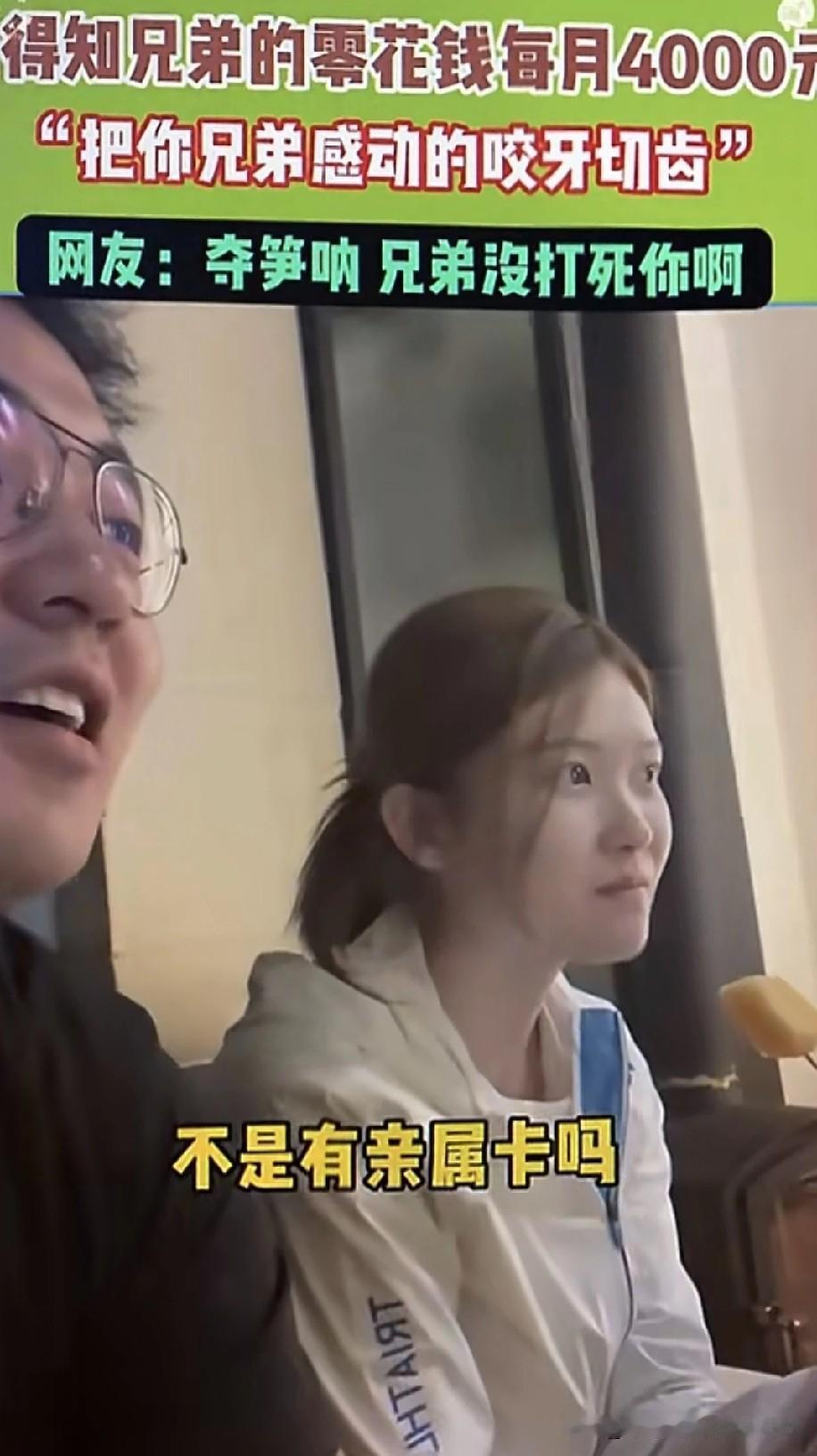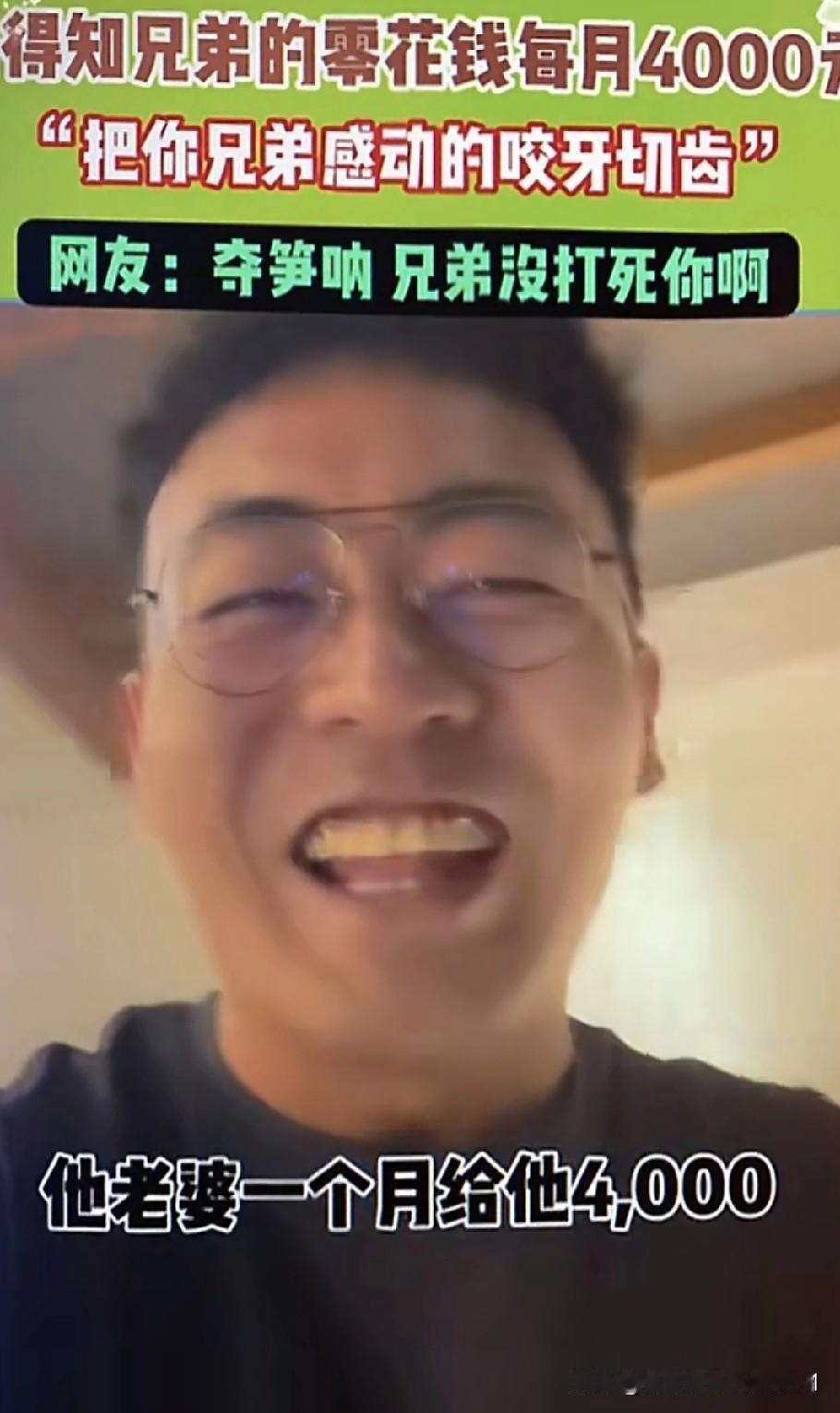 好兄弟两家在一起聚餐聊天,男子得知好兄弟的媳妇每月给他4000元零花钱,十分惊讶,连忙反问:“是一个月4000元人民币吗?”好兄弟确认是人民币后,男子直呼不可思议,接着问:“兄弟媳妇,你知道我老婆每月给我多少零花钱吗?” 好兄弟媳妇也好奇,追问:“一个月给多少呀?”男子的媳妇无奈道:“没有钱。”好兄弟媳妇很疑惑:“那他没钱花咋办?”男子媳妇解释:“有亲属卡啊,就是亲密付,他不需要自己有钱,花一元钱我都会收到短信。” 好兄弟媳妇这才知道还有这种功能卡,她微笑着,掩饰内心学到妙招的喜悦。可此时好兄弟的脸色却十分难看,咬牙切齿地感谢男子请客吃饭。