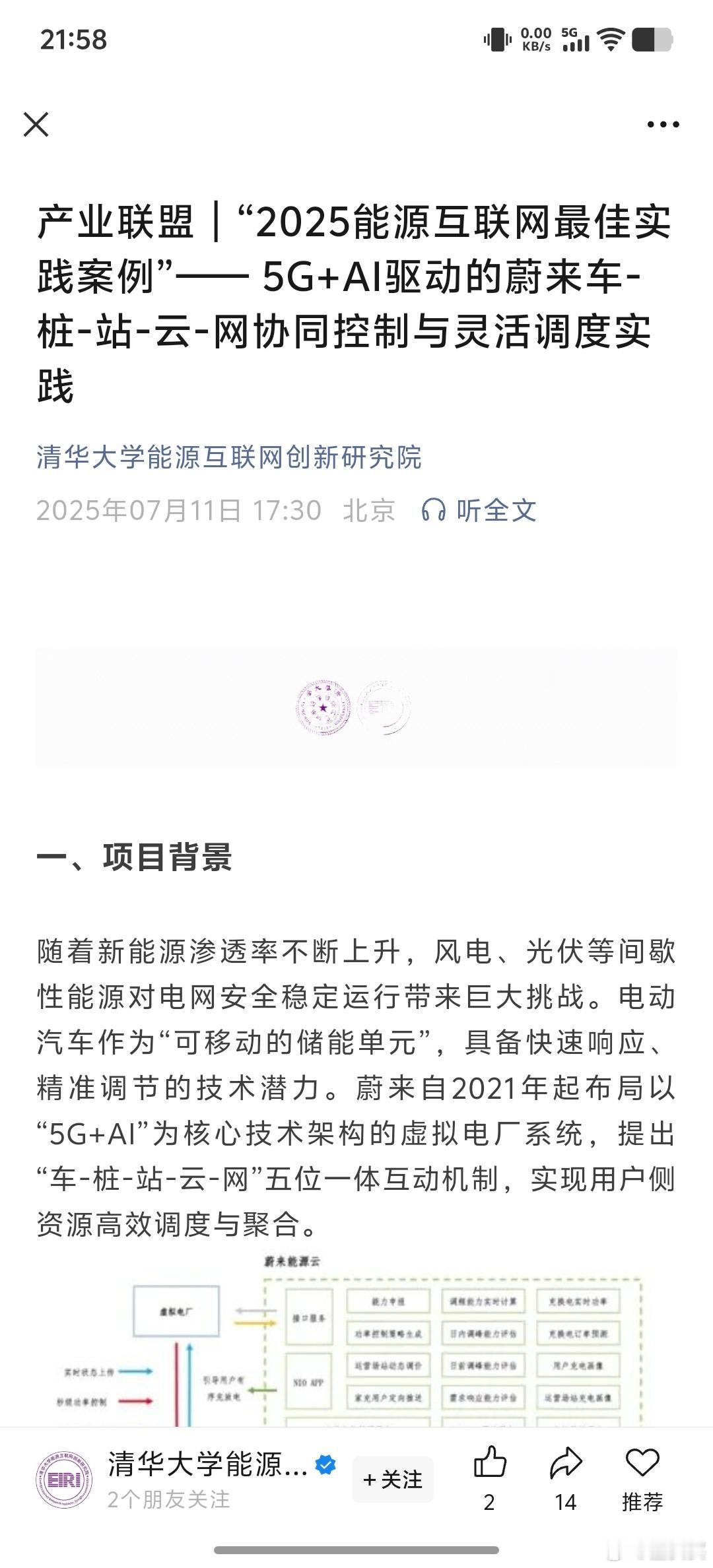 蔚来能源参与虚拟电厂国家重点项目并顺利通过技术验收。