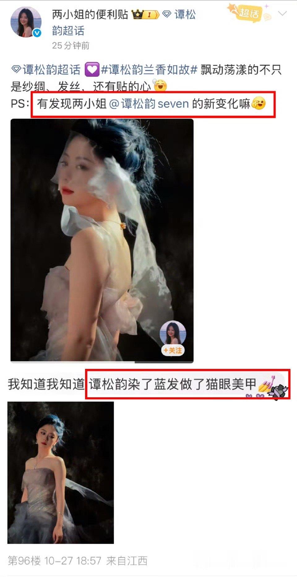 谭松韵染了蓝发 工作室花絮藏不住的惊喜!两小姐的蓝发新造型太亮眼,是从古典油画里走出来的氛围感美人没错了!