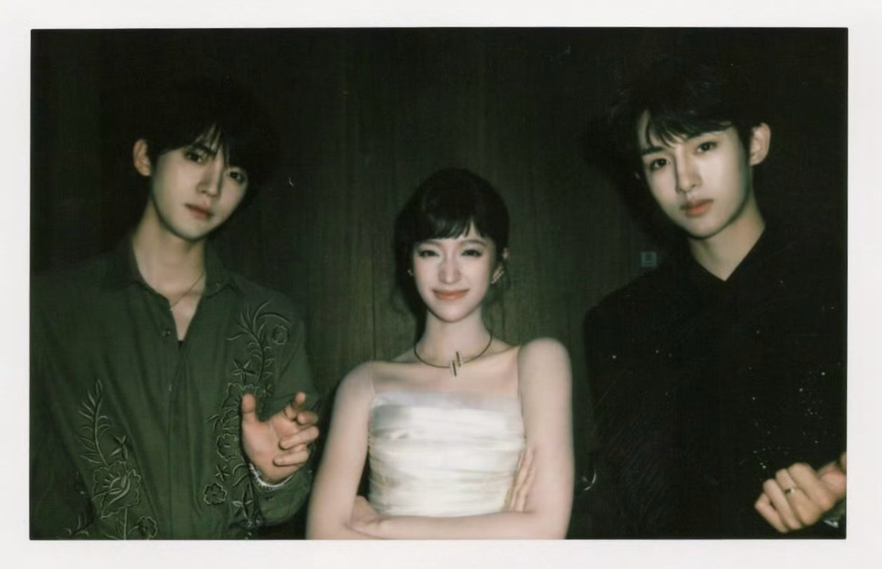 董思成周翊然欧阳娣娣拍立得合照