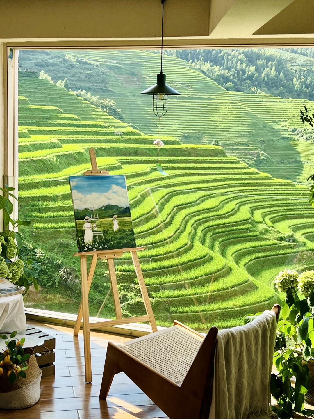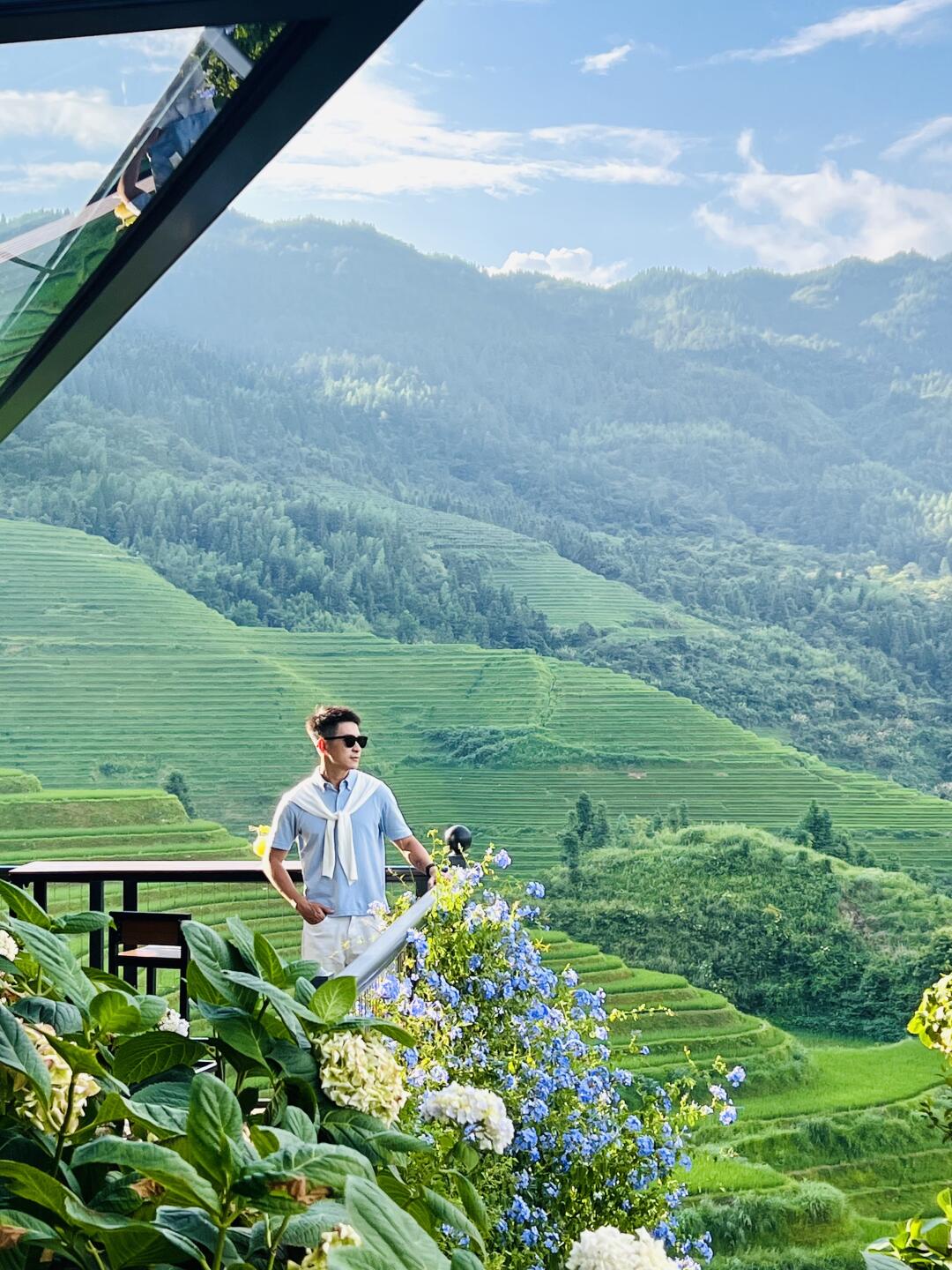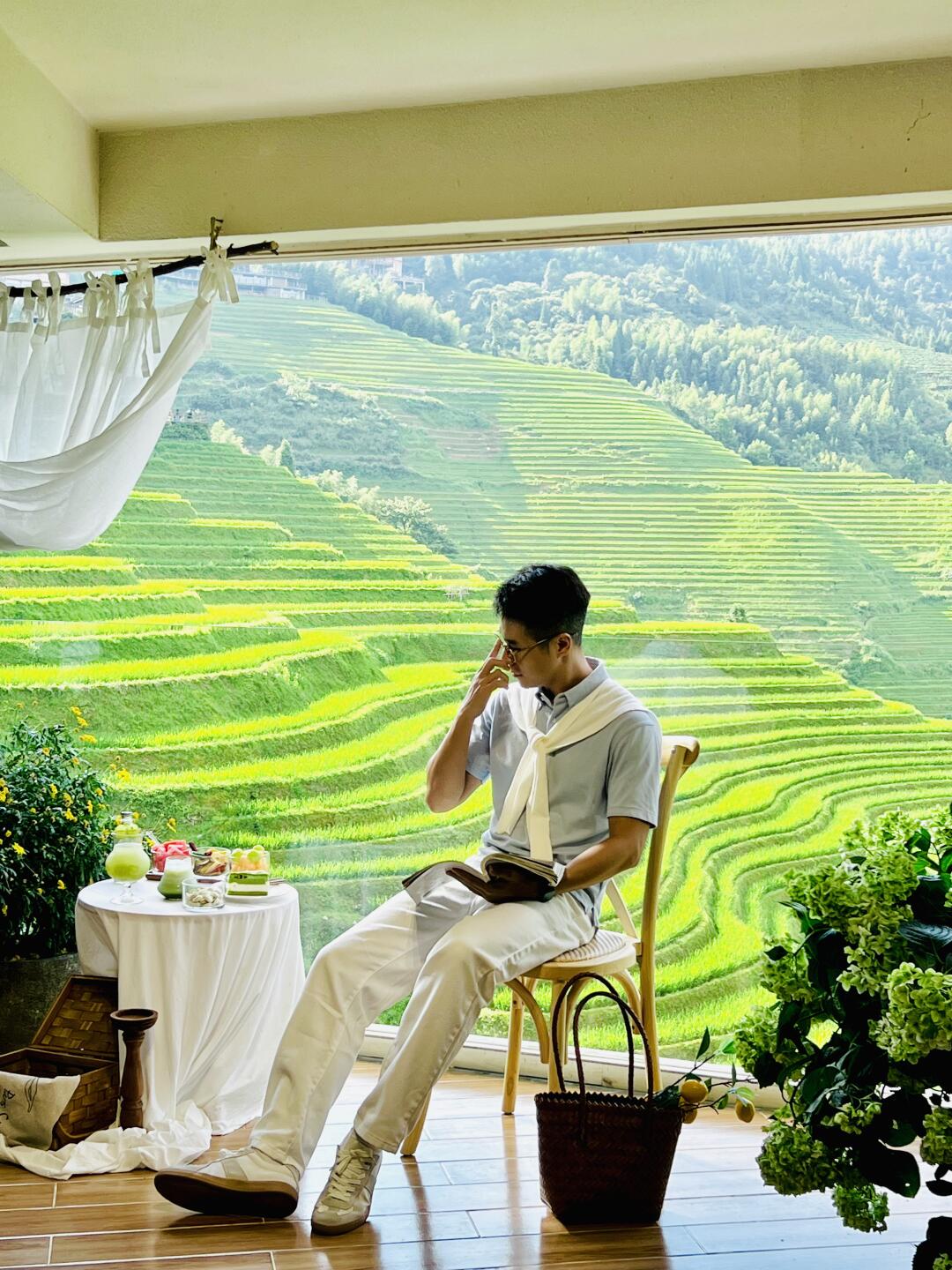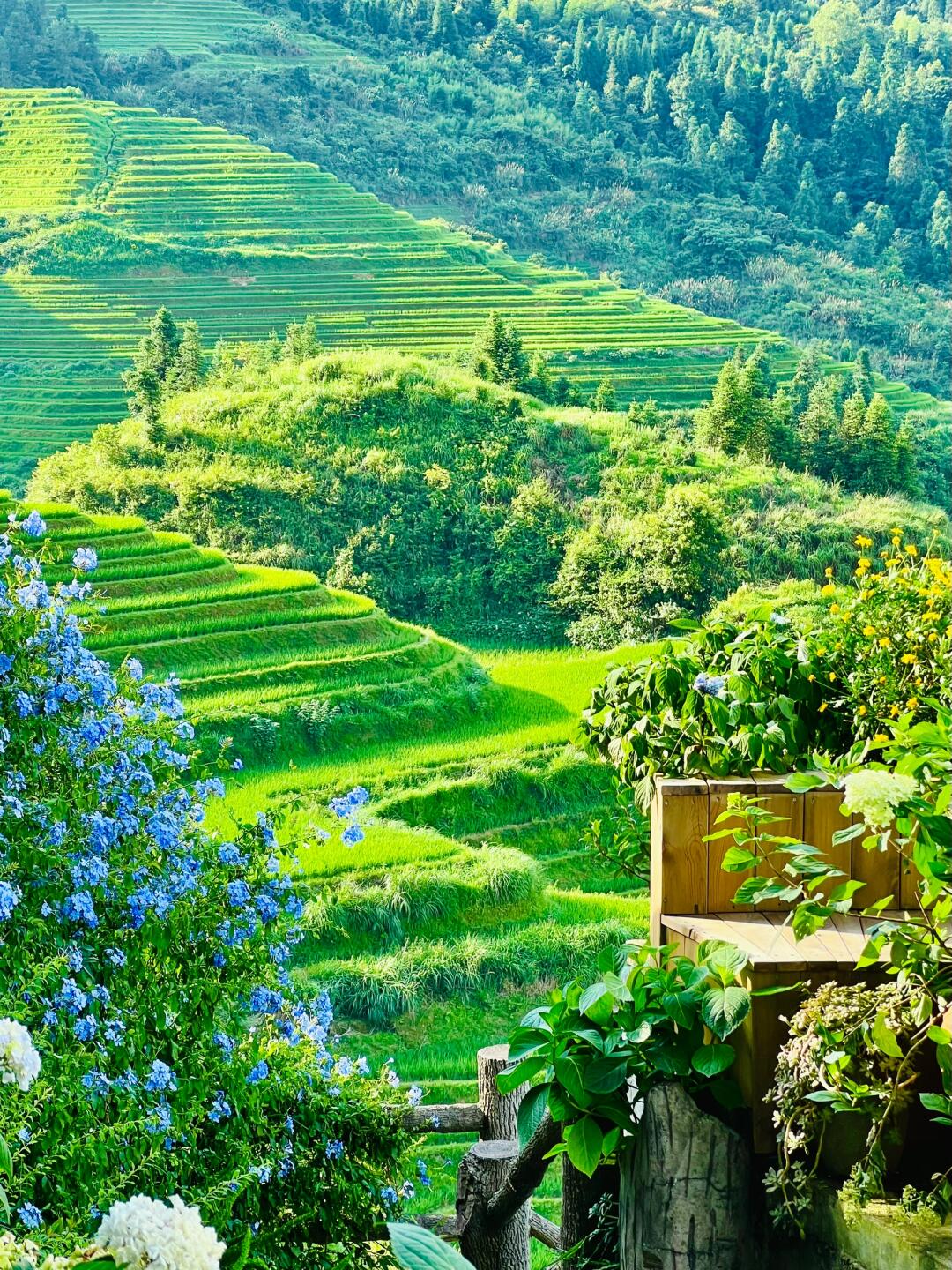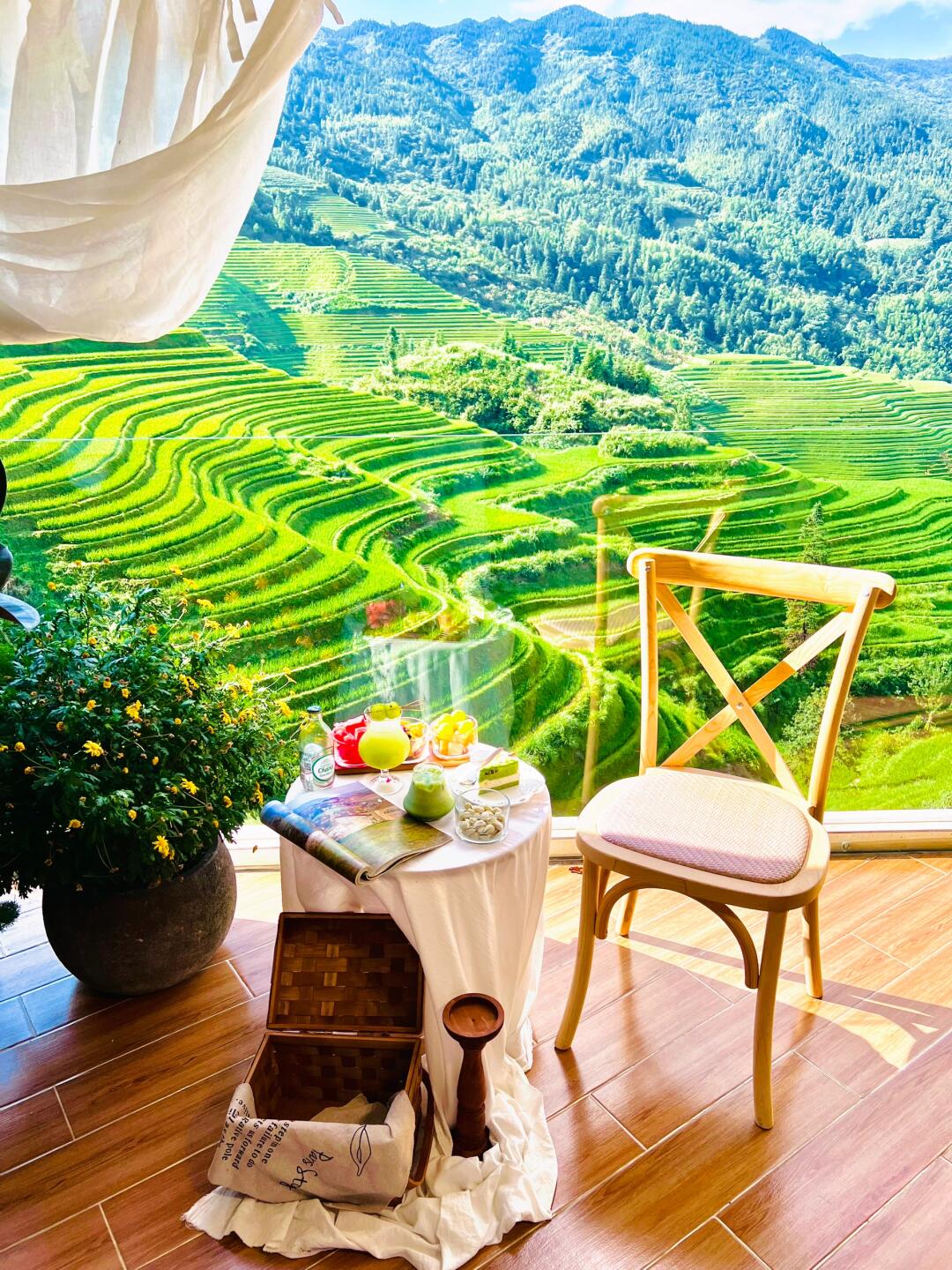 外人节 户外48小时 ⛰️龙脊梯田,广西独有的自然风光景区! 美得太离谱,作为一个广西人我对你说声抱歉! 我没有想到是一幅散落在人间的油画🏞~ 在阳朔坐车来快3小时,一开始是有点后悔的! 🫢但身临其境那一刻,我9月下旬一定还要再来看黄金梯田! 绿野仙踪,人间仙境,美得不真实!🧐 我们就住在天空之城民宿,这一片很安静,游客比较少,最佳龙脊梯田观赏点。 👏🏼民宿的下午茶的景一定会让喜欢拍照的你爆内存!每一个点位都无敌出片!