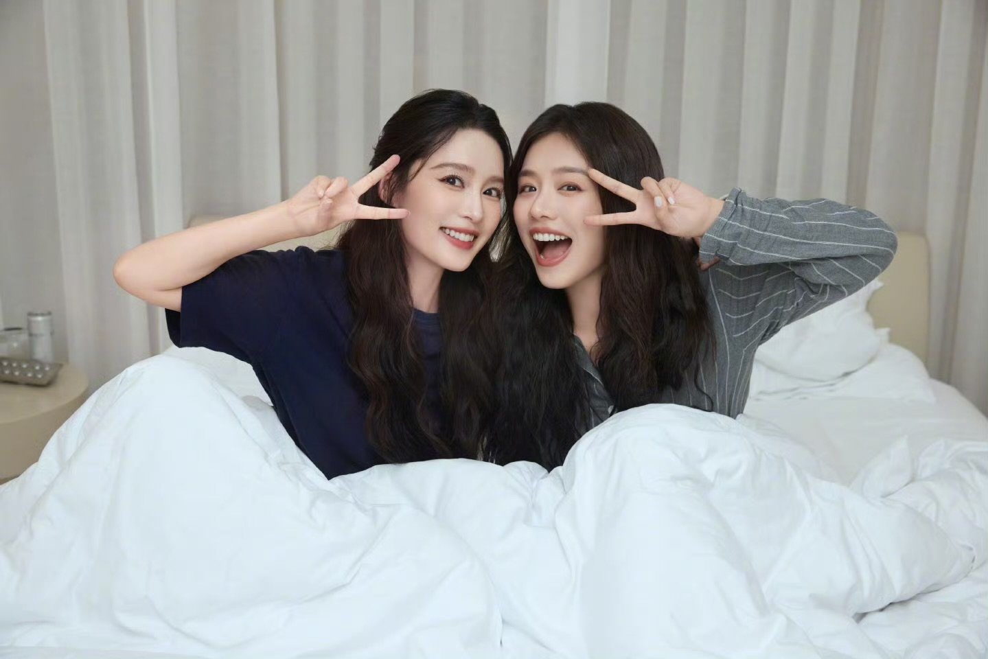 李沁马思纯下班盖一条被子李沁马思纯elle下班晚安合照世界上怎么会有如此萌的两个