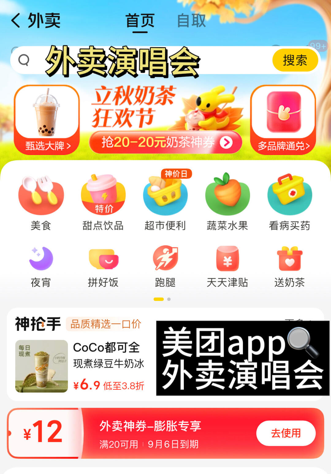 一问才知道 原来是美团外卖搞了个活动,在美团会员中心或搜“免费演唱会”可以报名参加活动,点外卖有机会获得奖品,奖品包含热门演唱会门票和大额神券!