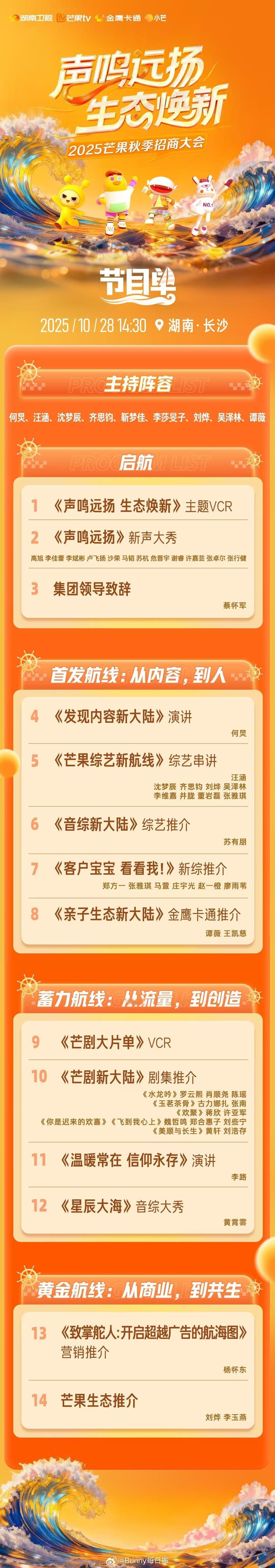 芒果秋季招商大会节目单 谁的童年DNA动了?《天天向上》官宣回归,这波回忆杀必须狠狠接住,就等新阵容揭晓了。