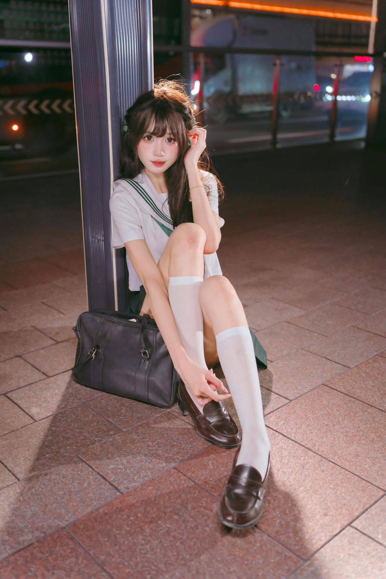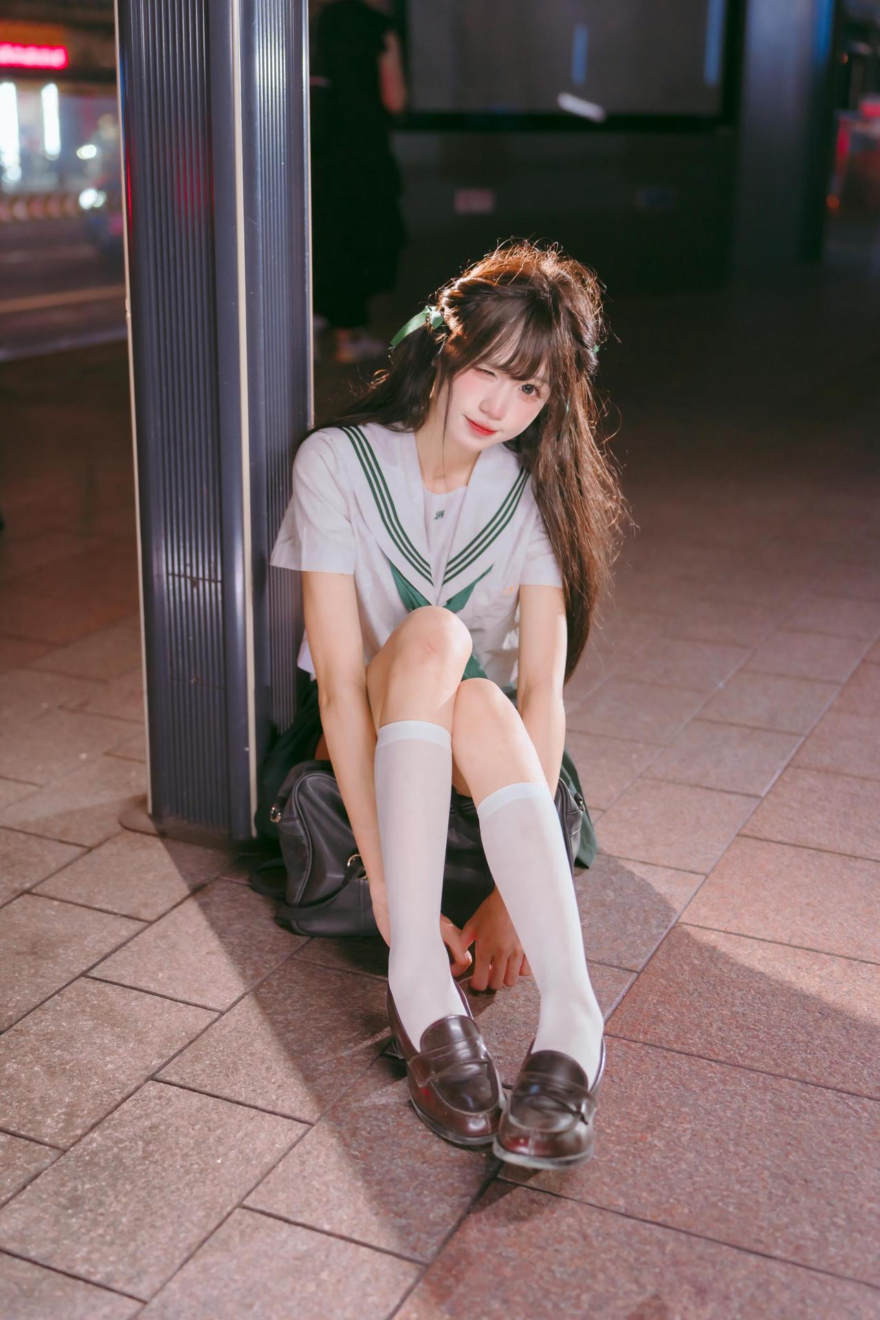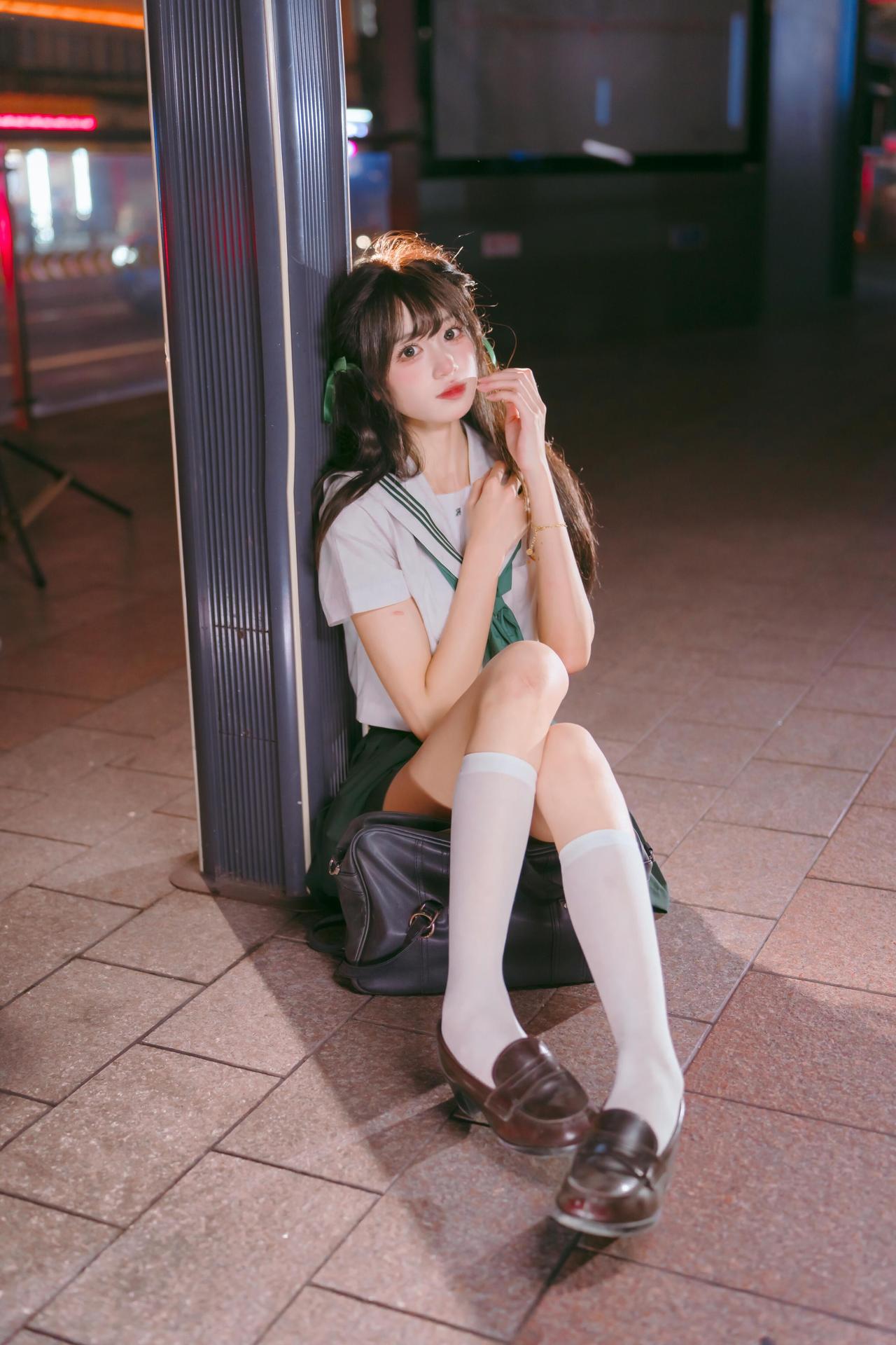 街头少女的私影像,在“纪实感”与“摆拍感”的边界上找到那种微妙平衡,让少女形象既真实可感,又具艺术张力。私影的纪实感来自环境的真实性,街头的立柱不是布景,地砖的磨损不是道具,背景的路人也不是群演,这些真实的街头元素,为画面奠定了“生活的厚度”。少女置身其中,不是“闯入者”,而是“原住民”——她的姿态、表情、与环境的互动,都像是被偶然捕捉的“生活瞬间”,这种纪实感让观者能代入“在街头偶遇这样一位少女”的临场感。 摆拍感则体现在“造型的设计感”。制服的搭配(绿领结、丝带的细节)、妆容的精致(清透感与红唇的平衡)、道具的选择(复古包袋与小熊挂饰的反差),都是经过设计的“造型语言”,为画面赋予“写真的艺术感”。这种设计感不是为了“造作”,而是为了提炼“街头少女的美学符号”——让她在真实的街头里,依然是视觉焦点,却又不显得突兀。 “平衡感”的核心是“情绪的自然流露”。摄影师没有让模特做过度夸张的动作,而是引导她呈现“日常化的情绪”——疲惫时的倚靠、思考时的抱膝、玩耍时的动态,这些情绪都是少女在街头可能真实发生的,只是通过摄影的提炼,变得更具画面感。这种“自然流露的情绪”,让纪实与摆拍的融合浑然天成,最终呈现出“像生活一样真实,像艺术一样动人”的街头少女群像。