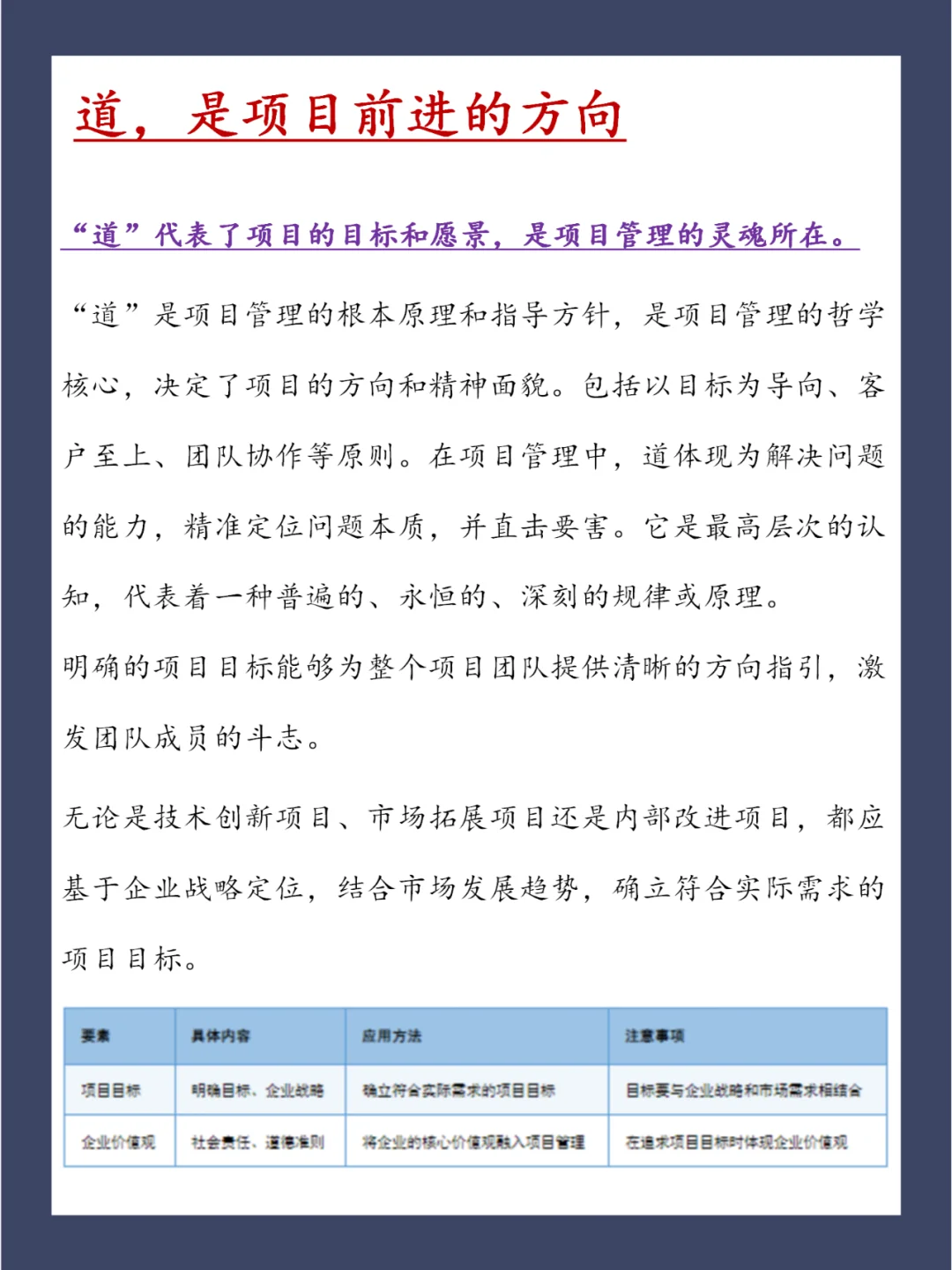在项目的推进过程中,无论是单个项目的执行,项目集的协调,还是项目组合的战略规划,其成功的关键因素往往离不开对“道、法、术、器、人”的理解和应用。 这五个方面不仅构成了项目管理的核心要素,同时也是确保项目顺利进行的重要保障。 项目 pmp项目管理 项目经理 项目管理 PMP pmp PMP 职场考证 证书 技能