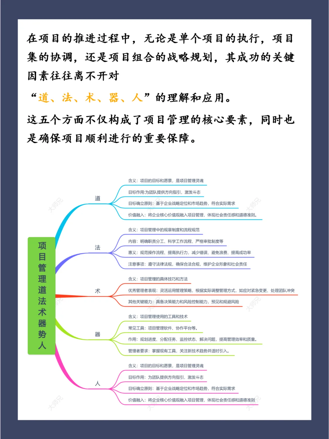 项目管理核心:道.法.术.器.人!