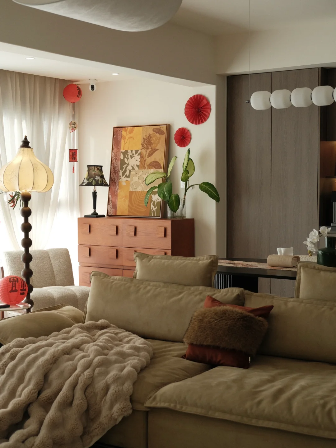 横厅七米的阳台不晾衣服, 做成了休闲角和阳台茶室, 亲戚朋友来了赞不绝口~ 除了好看,更重要的是利用率很高, 平时在这里晒太阳,喝下午茶,剪视频, 空间利用我算是玩明白了哈哈 新年将至, 给阳台换上新年装扮, 每一天都更加期待春节的来临~ 提前㊗️大家:新年快乐,蛇年大吉!
