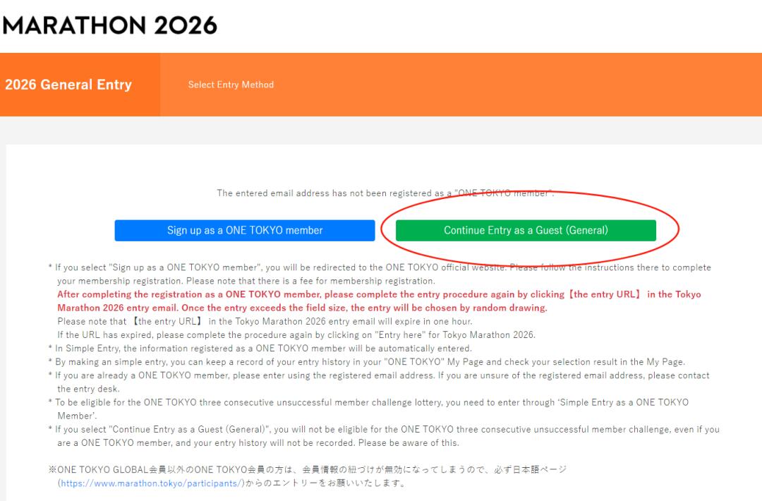 第七步:点击绿色框,继续以游客身份注册,左边蓝色框是ONE TOKYO会员身份注册,可以增加你的中签概率,但是需要30000日元,没有必要