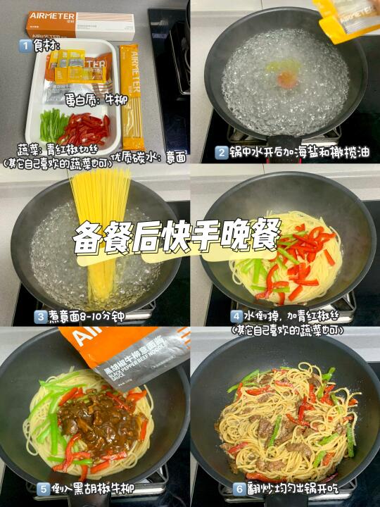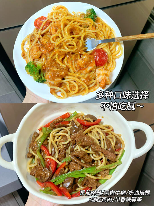 3️⃣晚餐: 番茄肉酱意面/黑椒牛柳意面换着吃🍝🍜