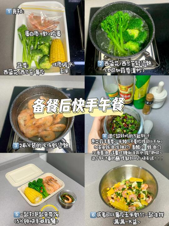 2️⃣午餐:虾🦐+西蓝花/西兰苔/黄瓜🥦+蘸料汁🫙+玉米🌽
