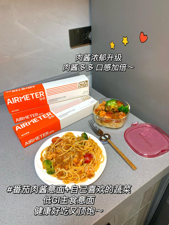 🔅下班回家累了不想做饭,选空刻意面就很方便~配料很齐全,新版番茄肉酱直接升级了20g,170g酱料裹满每根面,番茄酸香、肉酱浓郁,不到一半的价格吃到星级意面!而且它用料讲究,0添加防腐剂,杜兰硬小麦做的低GI意面,健康饱腹,15分钟即可享受一顿好吃营养的快手晚餐~
