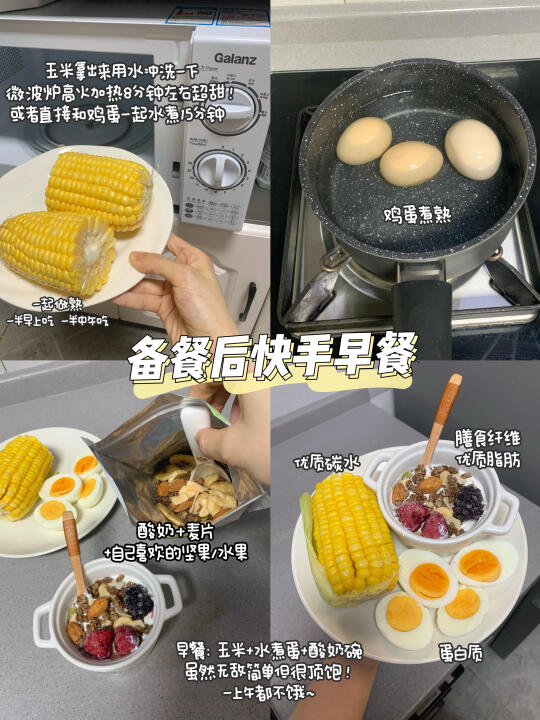 1️⃣早餐:玉米🌽+水煮蛋🥚+自制酸奶碗🥣