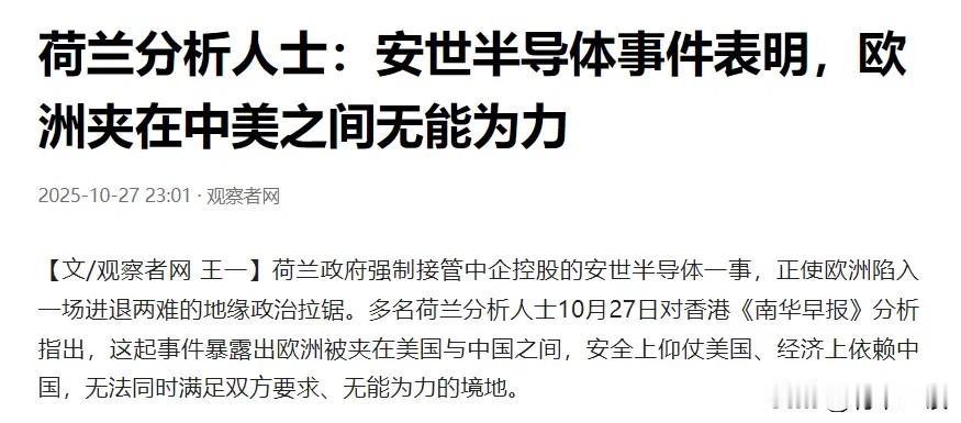 这步棋走得够硬、够解气! 终于把“被动”变“主动”。 安世中国扔出三张王牌!对欧供芯片提硬核条件,荷兰只剩嘴硬和等着更多的惩罚。 安世中国恢复对欧供货,只要客户满足三项条件,直接改写游戏规则! 可附带的三个条件一摆,直接让他们傻了眼——重新签协议、人民币结算、国内订单优先,每一条都戳中荷兰的痛处,这哪是供货,分明是改写游戏规则! 这次恢复供货,安世中国直接亮出底线: 第一个条件“重新签专属协议”,看似常规,实则是釜底抽薪。要知道,安世中国的原“总部”被荷兰资本接管后,一直想插手供应链,这次重新签约,等于把合作关系直接拉回中企主导,荷兰想借“总部”卡脖子的算盘彻底落空。 第二个条件“人民币结算”更狠。半导体行业长期被美元、欧元主导结算,安世中国这一步,相当于在欧美主导的领域撕开了个口子——欧洲厂商要么用人民币买芯片,要么就等着生产线停摆,等于逼着他们接受人民币在半导体领域的“话语权”。 第三个条件“国内订单优先、出货量动态调整”,则把话说得明明白白:中国新能源汽车、光伏产业正缺芯片,自家市场得先顾着,欧洲客户想要货,得看中国的需求节奏来。这一下就把主动权攥在了手里,再也不是过去“有求必应”的被动局面。 欧洲厂商现在彻底陷入两难:不接受?汽车生产线停一天就亏几千万,冬天的家电芯片订单也等着交付,根本耗不起;接受?就等于承认了安世中国的主导地位,以后买芯片得看中国脸色,连荷兰政府之前喊的“技术封锁”都成了笑话。 最尴尬的还是荷兰。之前他们以为接管了安世的“总部”,就攥住了芯片供应链的命脉,还跟着美国对中国搞技术限制,结果安世中国早把研发、生产基地扎根在国内,这次直接绕开荷兰总部对接客户,等于告诉他们:你抢的只是个空壳子,真正的核心资源早回中国了。 现在荷兰除了嘴上喊“不公平”,根本没辙——真要是逼急了,安世中国完全可以切断供货,先保国内市场。