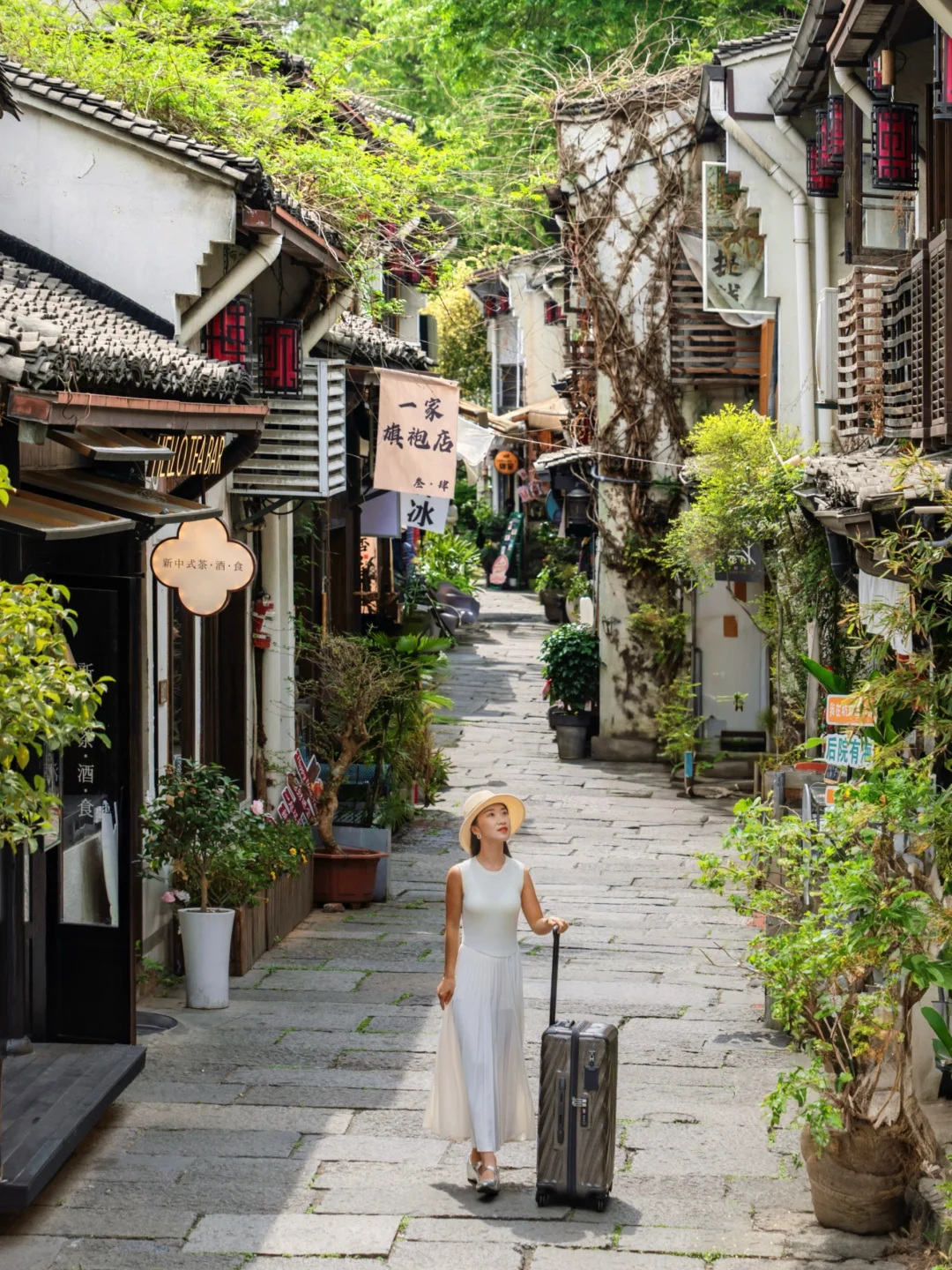 白墙黛瓦的江南民居与文艺小店碰撞,咖啡香与喵星人随处可见。早上9:30之前人很少,适合拍照