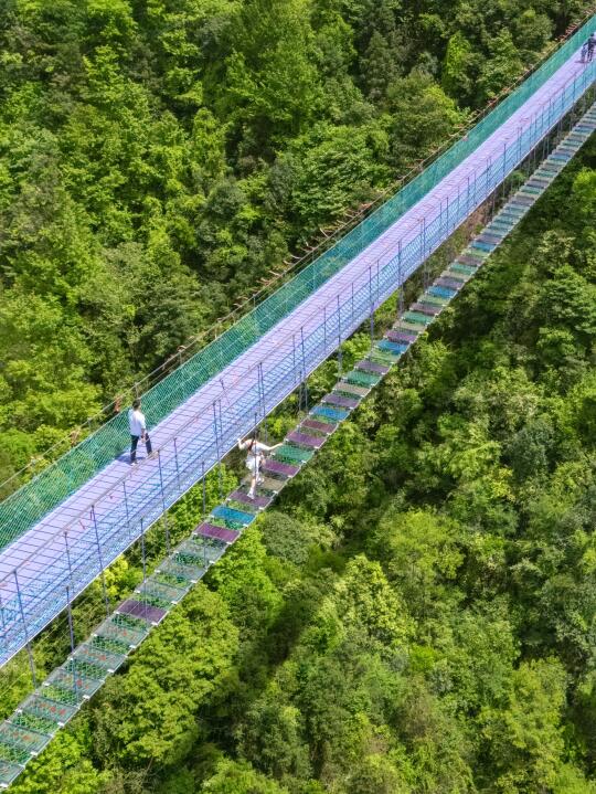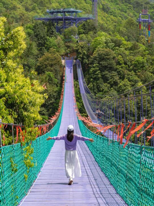 🌟 云梯天桥:坐落在山谷间的两座吊桥,全长300米,落差80米,非常惊险刺激。拍照也好看🧚♀️