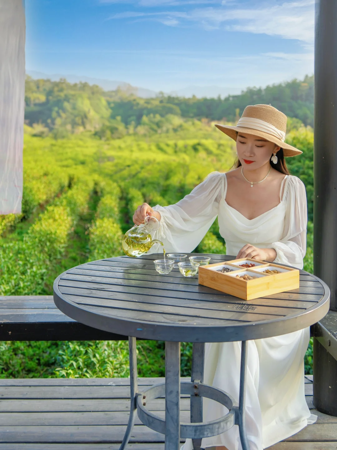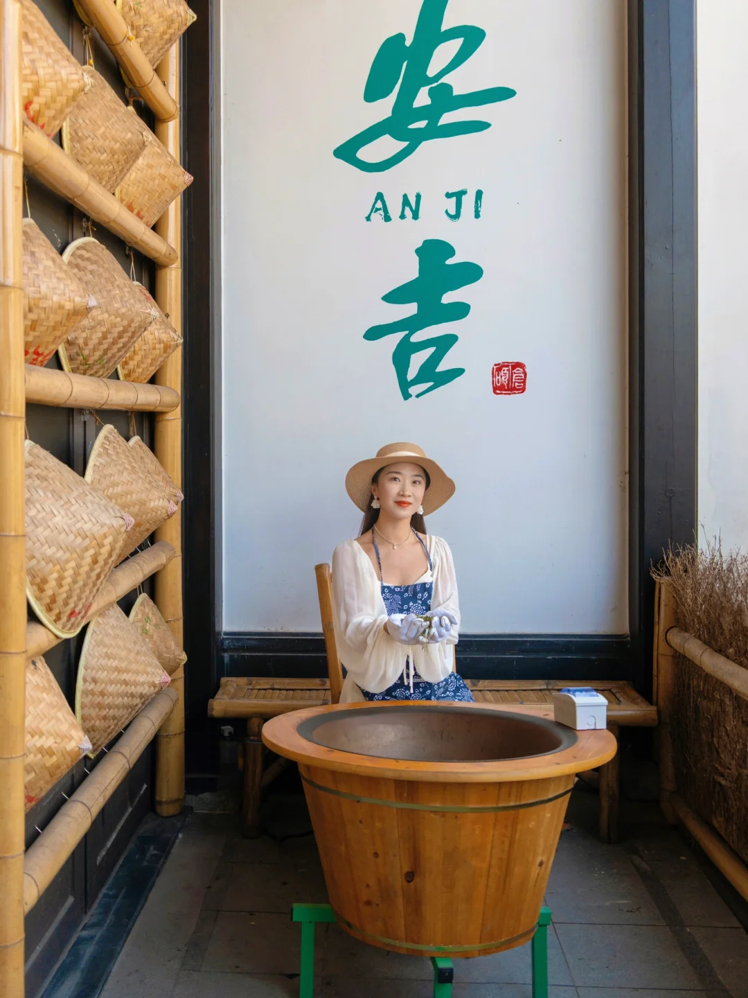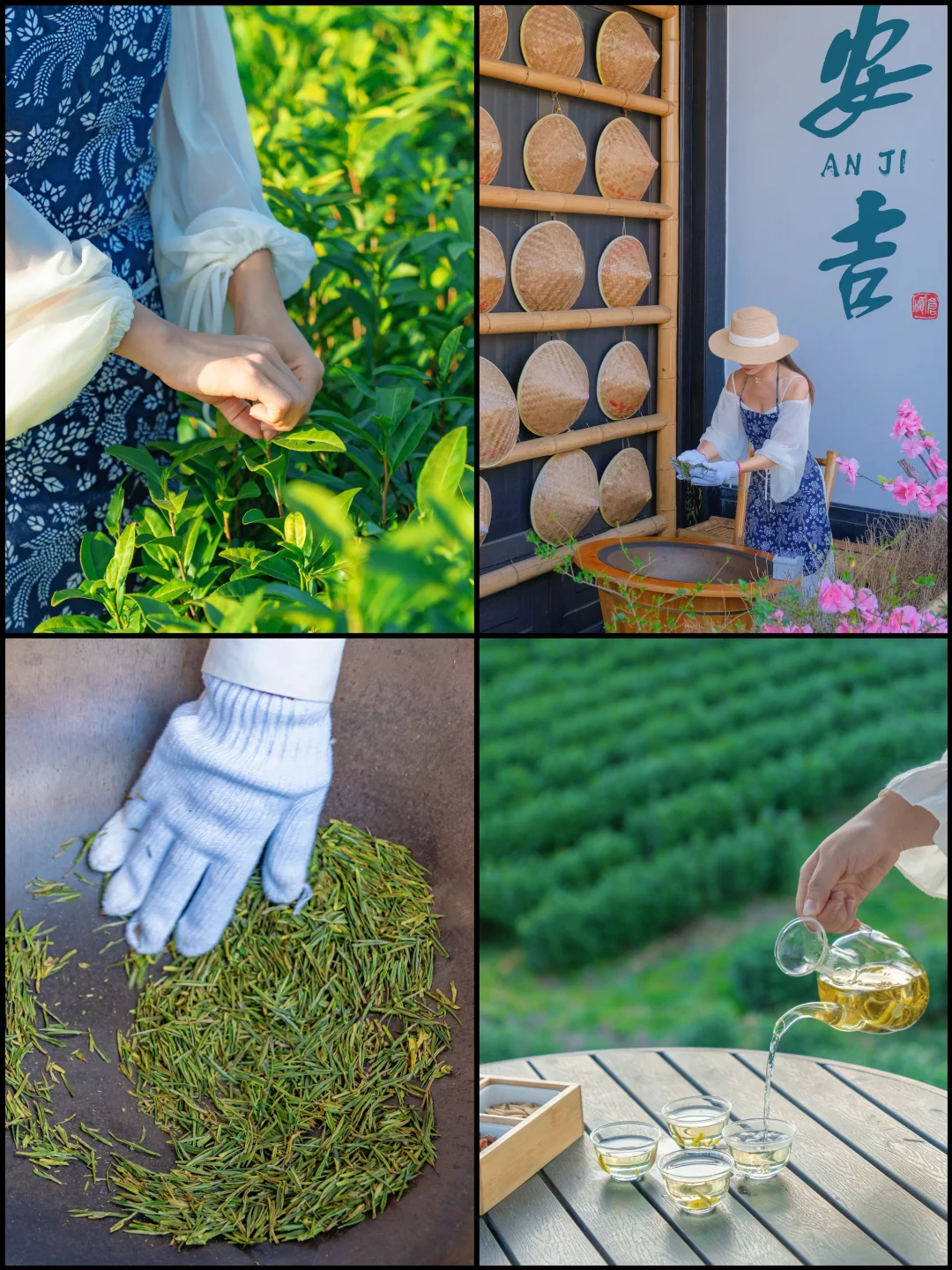 春日来安吉当然不可错过采茶体验了!带上围裙、背上竹篓,亲手摘下茶叶,采完茶叶自己炒,再把炒好的茶叶带走,这样的体验真的很有意义👏茶山上没人也很适合放空和拍美照🧚♀️一小时的采茶体验,采多少炒多少都能带走,姐妹们冲呀🤭