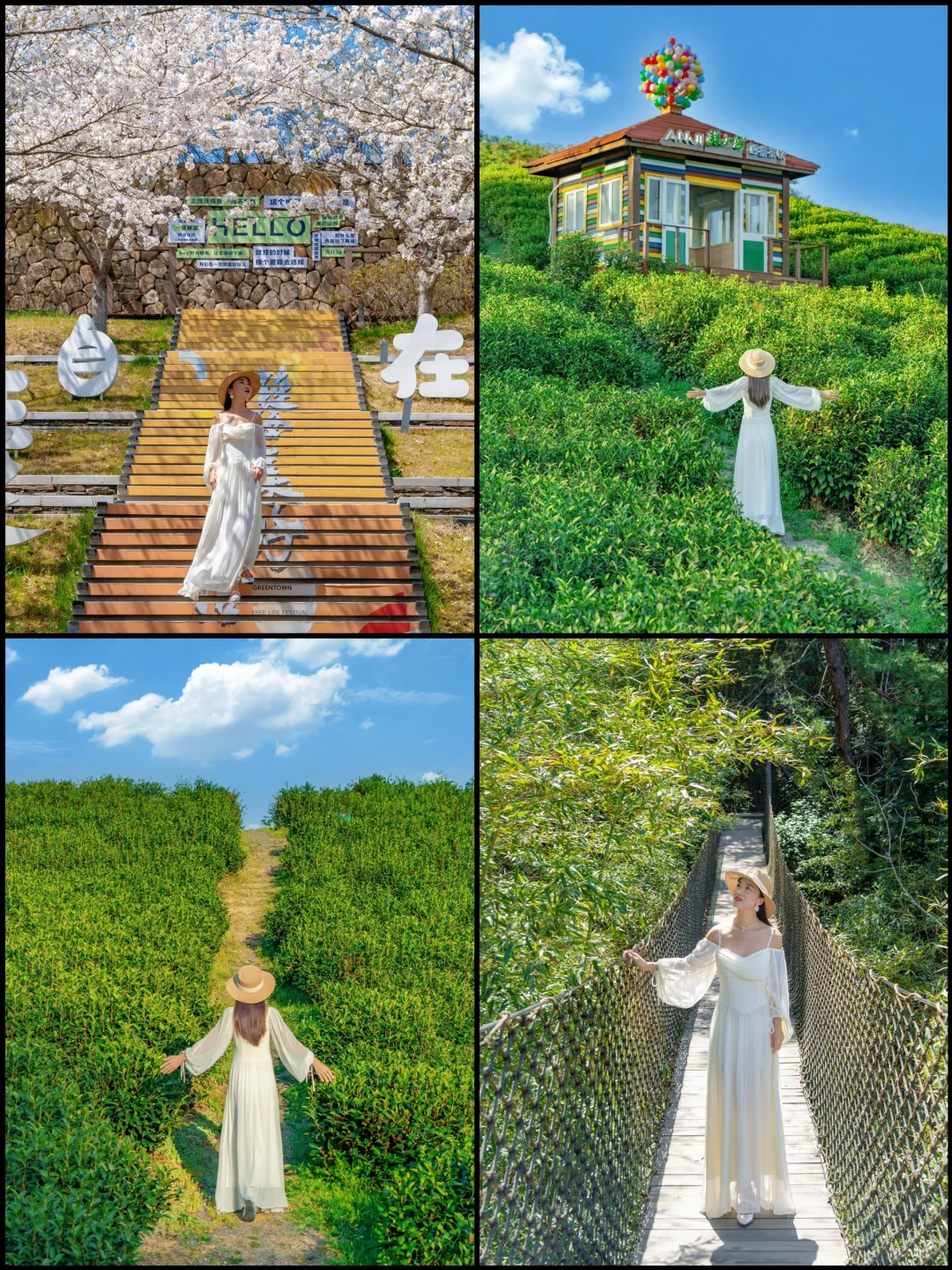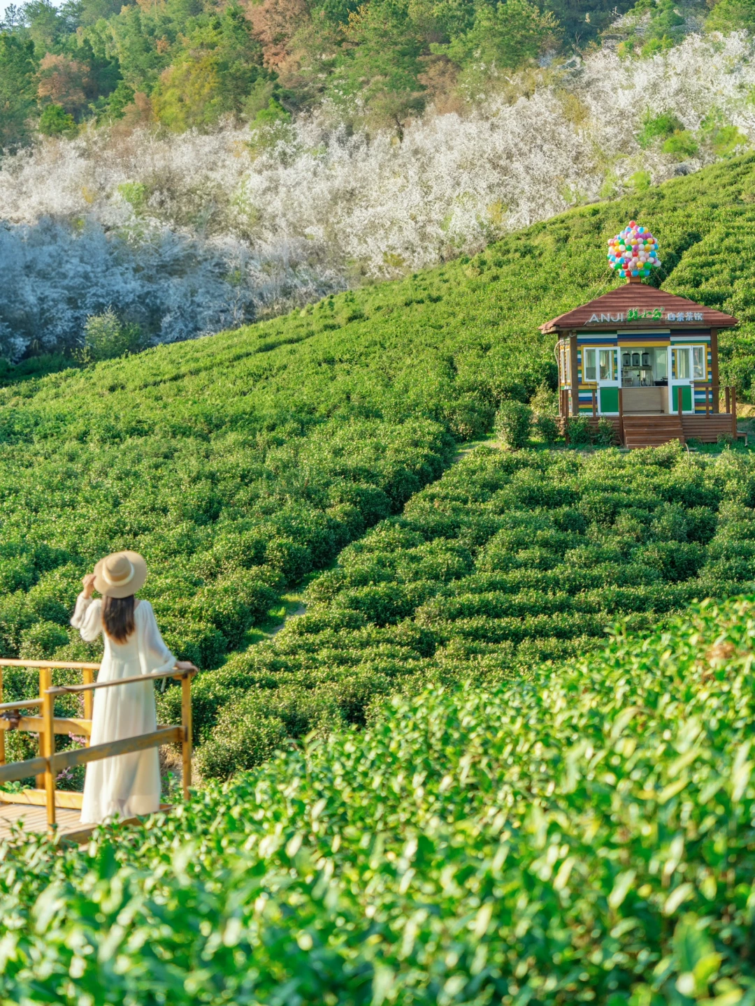 🔸Day2: 「鲸奇谷乐园」赏花+户外无动力乐园游玩→ 「灵峰山」祈福🙏 →返程之前带一杯安吉本地茶饮「鲜小白」,打卡网红墙📷