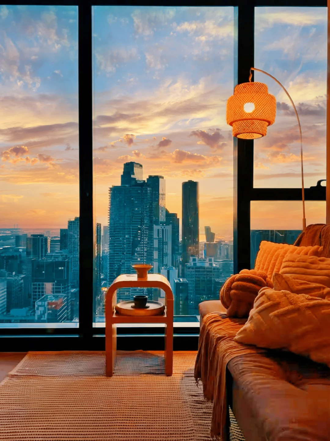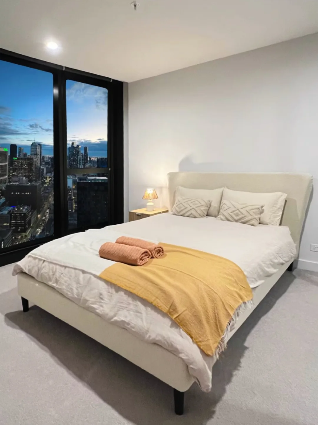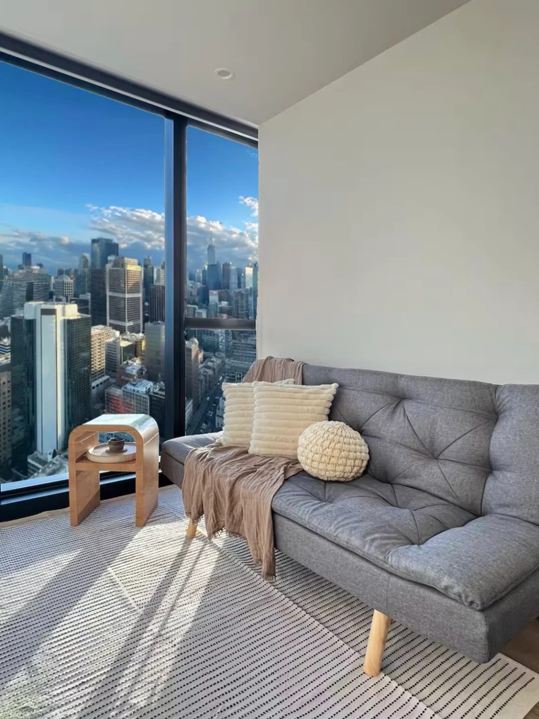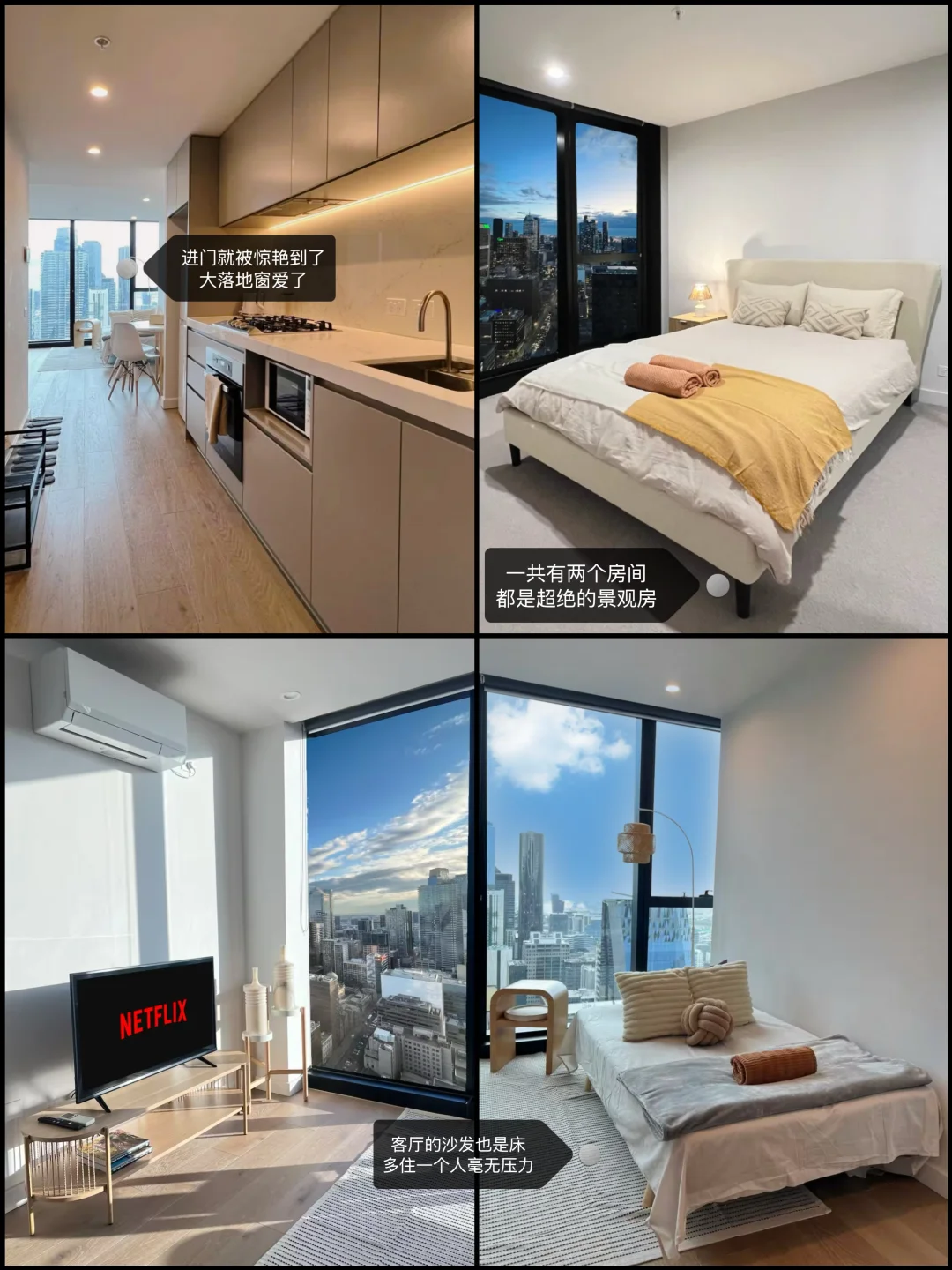 一开门,我们全家就被落地窗的景色震撼了。无论是在客厅还是卧室,都能把整个墨尔本的城市景观尽收眼底。夜幕降临,城市的灯火如繁星点点,坐在大落地前,很是享受…