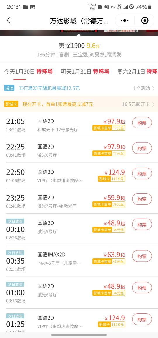 常德万达电影票 价格怎么这么贵? 三张电影票花了308.7, 甚至比北京和长沙都贵40-60元, 晚上十点的,票价120多。 我的天,又不能退票了。 我也是无语。 想着过年看电影,没想到常德万达票价这么离谱。