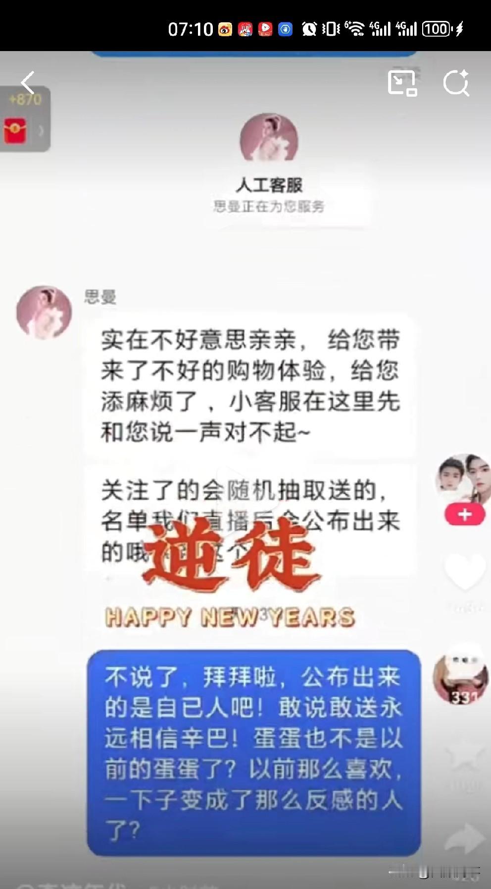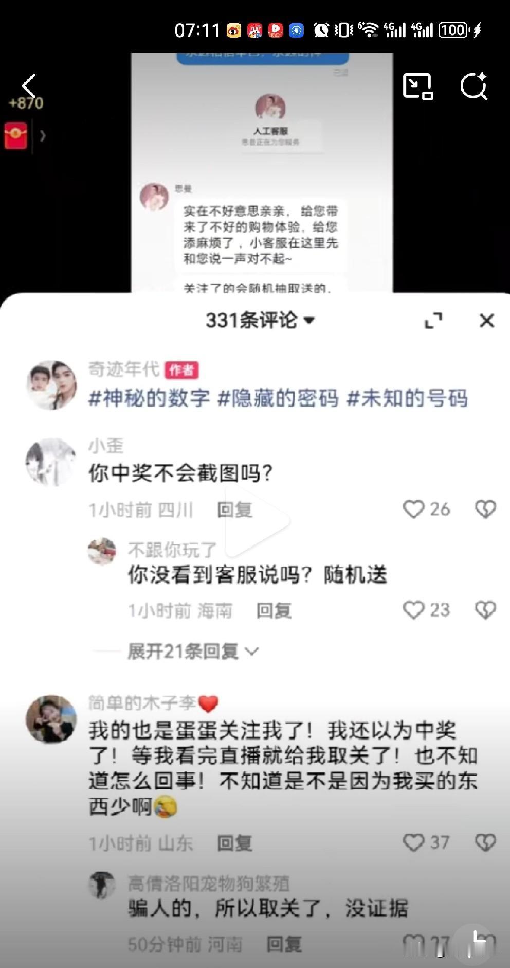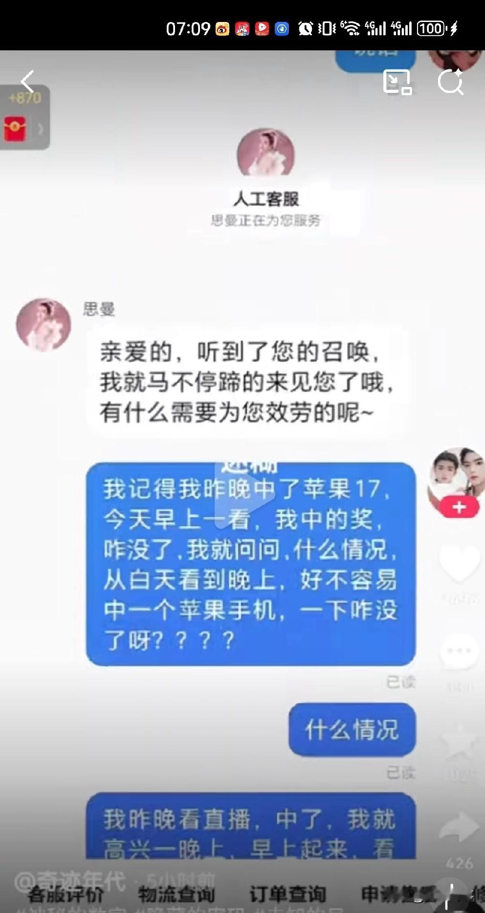 粉丝在蛋蛋直播间抽中苹果17,但是客服回复是随机抽取送! 蛋蛋粉丝在蛋蛋直播间熬时长,从白天看到晚上中了苹果17突然没了,蛋蛋客服说(蛋蛋账号)关注了的会随机抽取送。 评论区也有网友有相似经历,说被蛋蛋关注了,以为中奖了,但是等看完直播就给取关了! 蛋蛋挺牛,又出新套路骗粉丝下单!