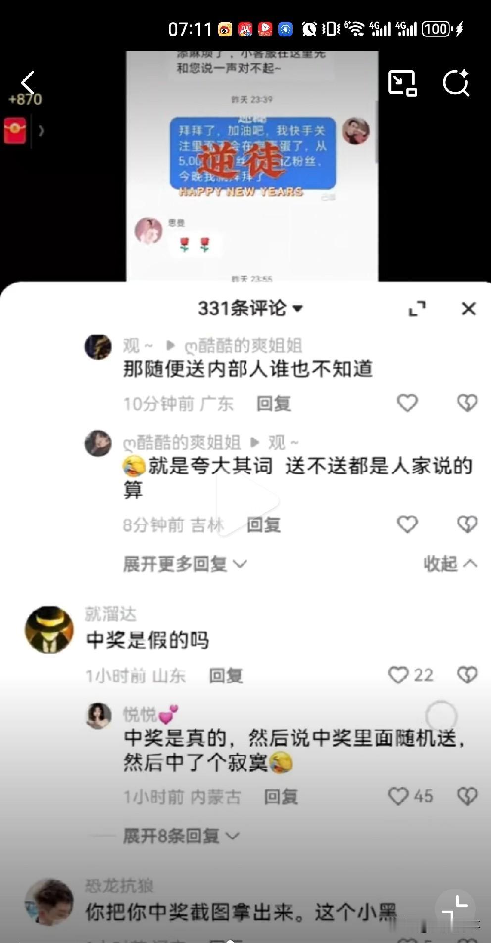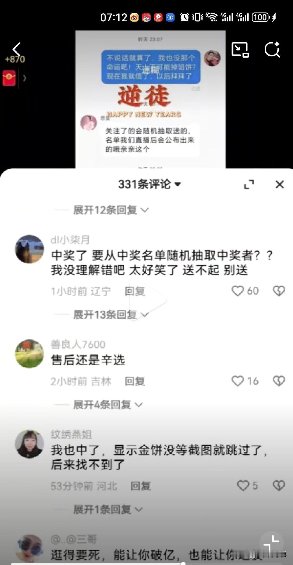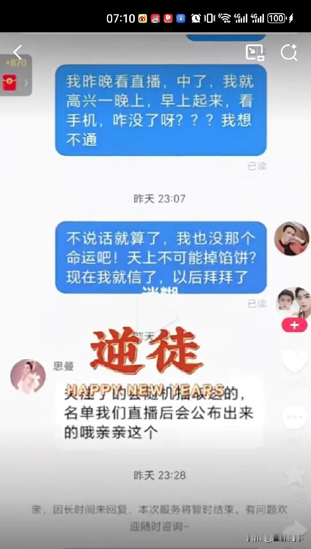 粉丝在蛋蛋直播间抽中苹果17,但是客服回复是随机抽取送! 蛋蛋粉丝在蛋蛋直播间熬时长,从白天看到晚上中了苹果17突然没了,蛋蛋客服说(蛋蛋账号)关注了的会随机抽取送。 评论区也有网友有相似经历,说被蛋蛋关注了,以为中奖了,但是等看完直播就给取关了! 蛋蛋挺牛,又出新套路骗粉丝下单!