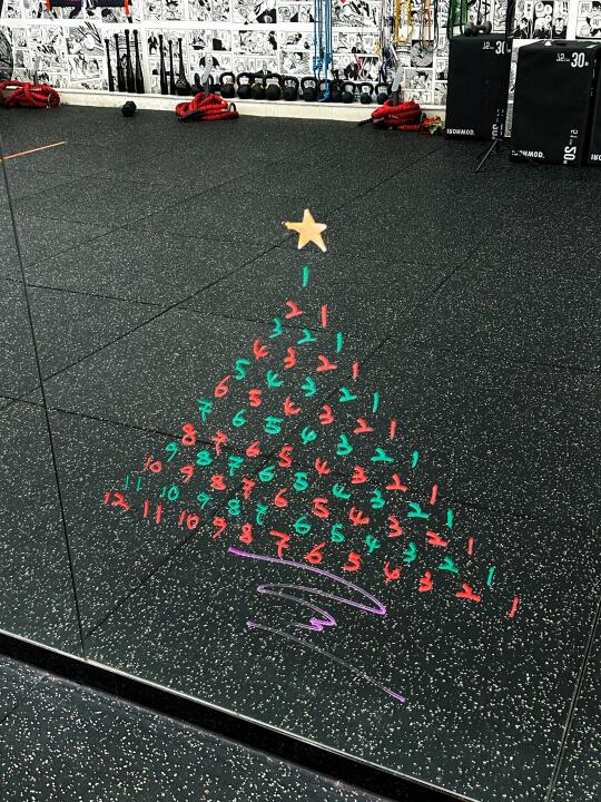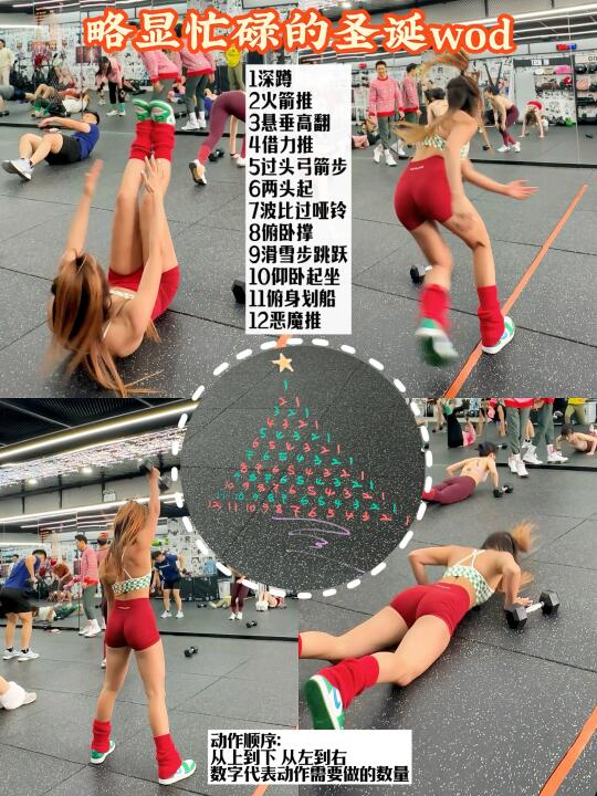 提前过圣诞啦!!健身人的圣诞节当然也是要运动的!! 🎁祝大家圣诞快乐,天天快乐🎉 🎄制作: 先摆好然后拍,再用【醒图】-模版-预制圣诞,就能找到相同的贴纸了 🏋️今日wod: 1深蹲 2火箭推 3悬垂高翻 4借力推 5过头弓箭步 6两头起 7波比过哑铃 8俯卧撑 9滑雪步跳跃 10仰卧起坐 11俯身划船 12恶魔推 👉🏻动作顺序就是圣诞树,从上到下,从左到右,数字即代表要做的次数,具体可以看图,可以去试试自己需要用时多少哦! 氛围太好啦!!是一个不一样的圣诞✌️