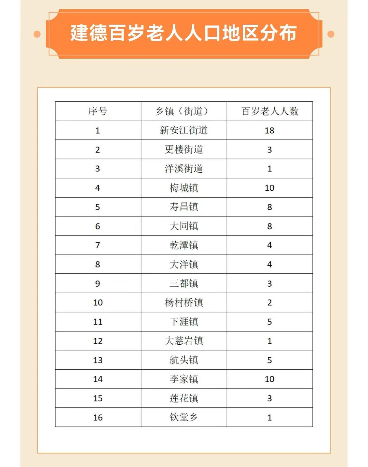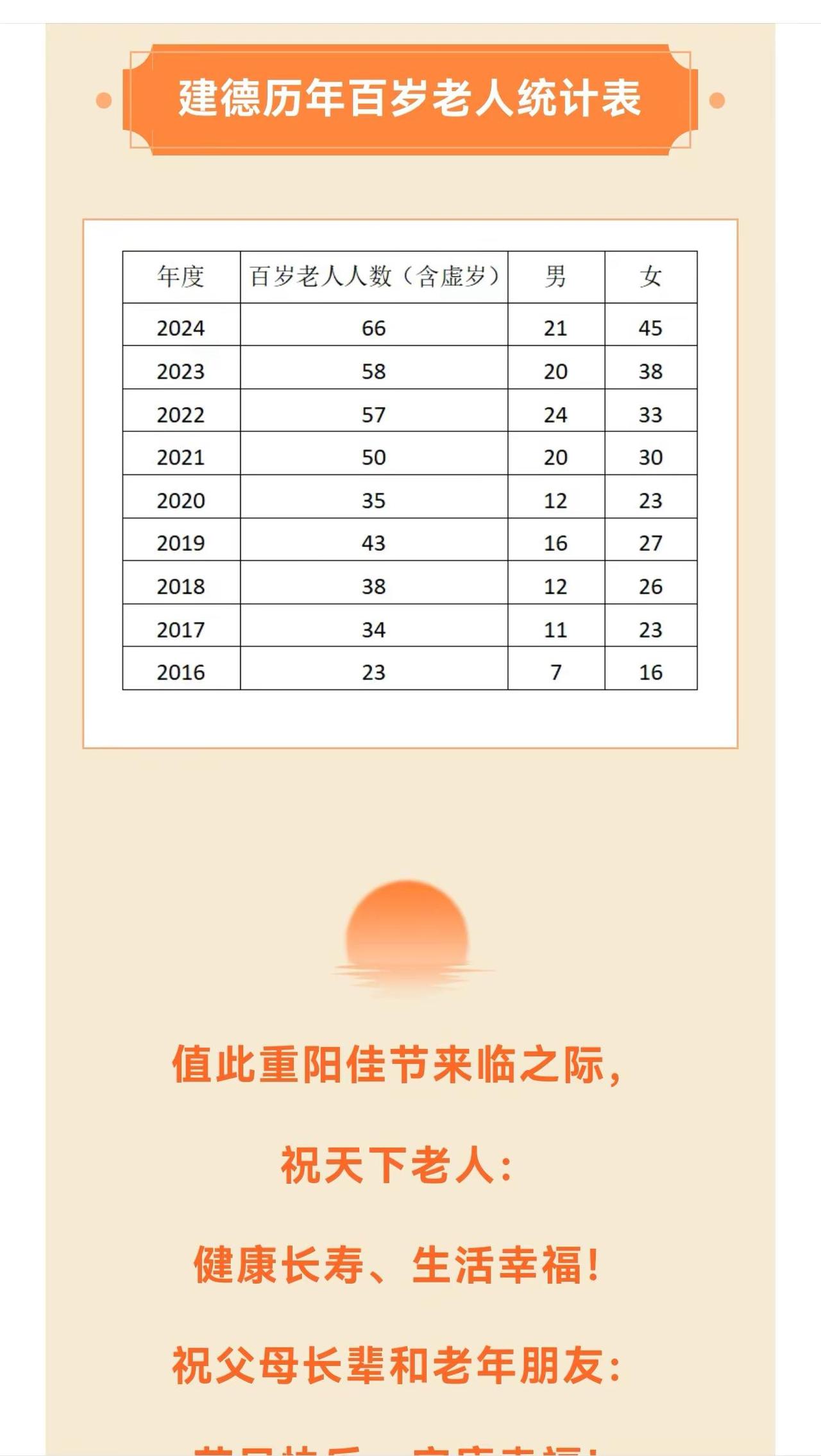 建德市今年百岁老人86人(含虚岁),比去年同期相比增长20人(数据来自建德发布)