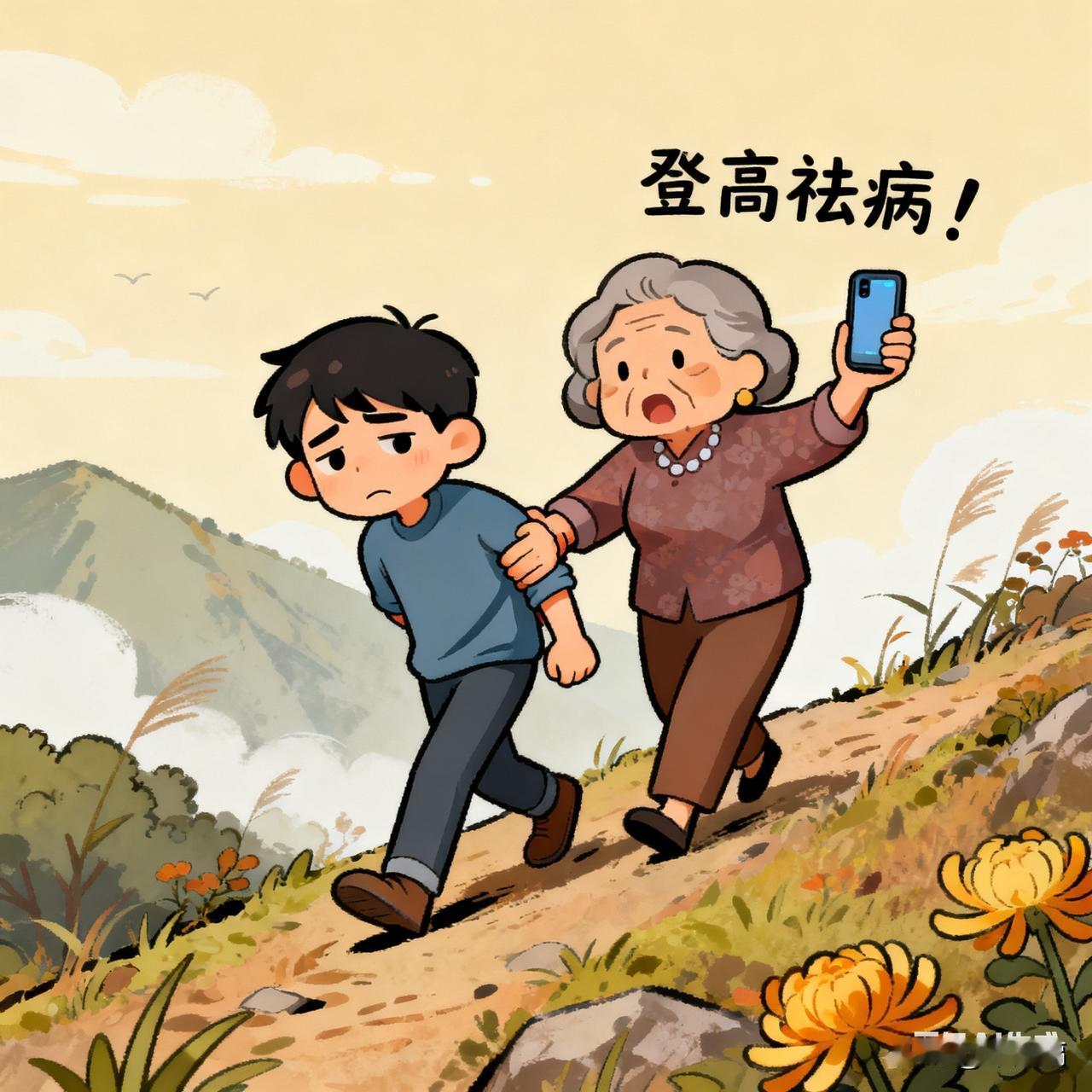 本来想赖床,被老妈一句“登高能祛病”拽出门,爬了三层山,长辈精神抖擞拍风景,我扶着腰怀疑人生:这哪是祛病,是给我量身定做的“体能测试”啊! 回家还得陪唠嗑,听爷爷讲第八遍年轻时爬山的英勇事迹,点头如捣蒜顺便把保温杯递过去。总结:重阳节的真谛,就是用晚辈的“累并快乐着”,换长辈的“笑开颜”,!