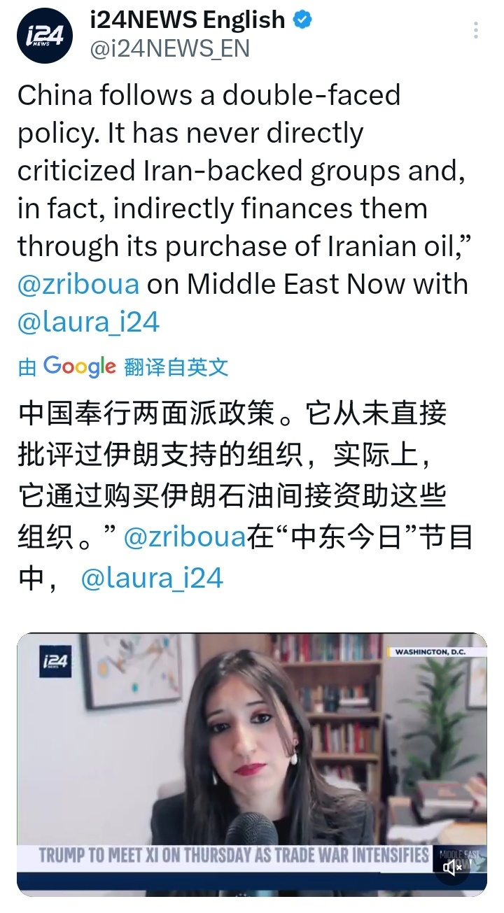 加沙停火协议巴以冲突 以色列媒体:中国奉行两面派政策。它从未直接批评过伊朗支持的组织,实际上,它通过购买伊朗石油间接资助这些组织。