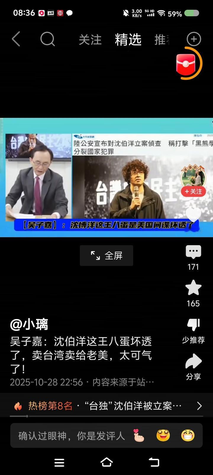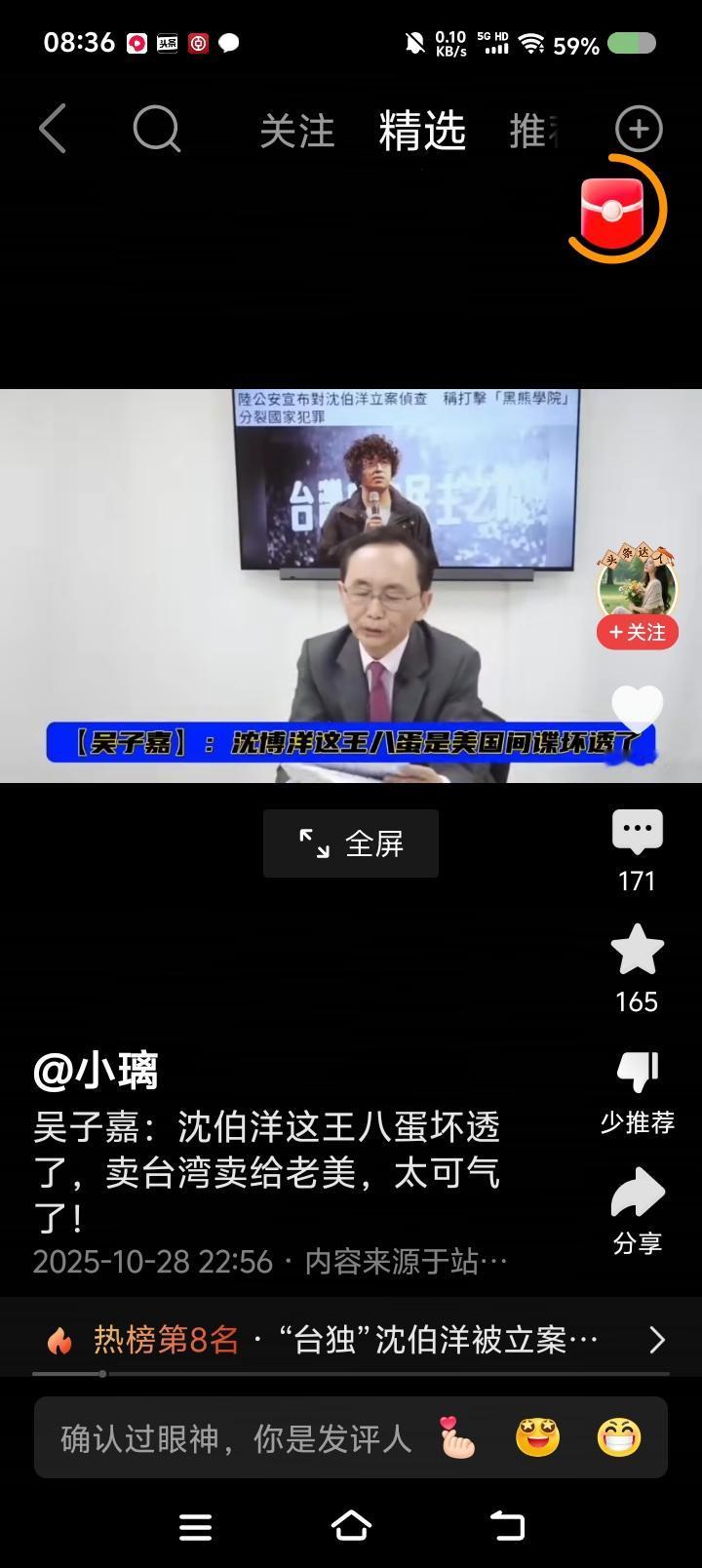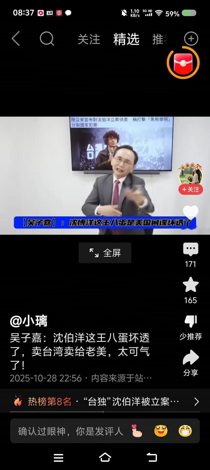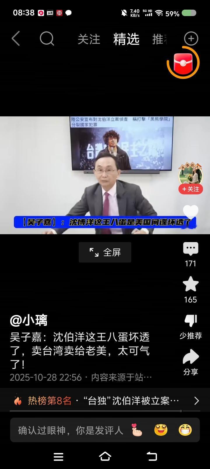 吴子嘉太逗了! 节目里,他骂沈伯洋凭什么拿了10亿台币,自己当初不到10万。还说沈伯洋通美…… 人才! 这是向什么人比忠心卖惨吗? 警告台du势力,不要玩把戏了!一丘之貉,不要排老大老二老三了。雷劈下来,不分大小。