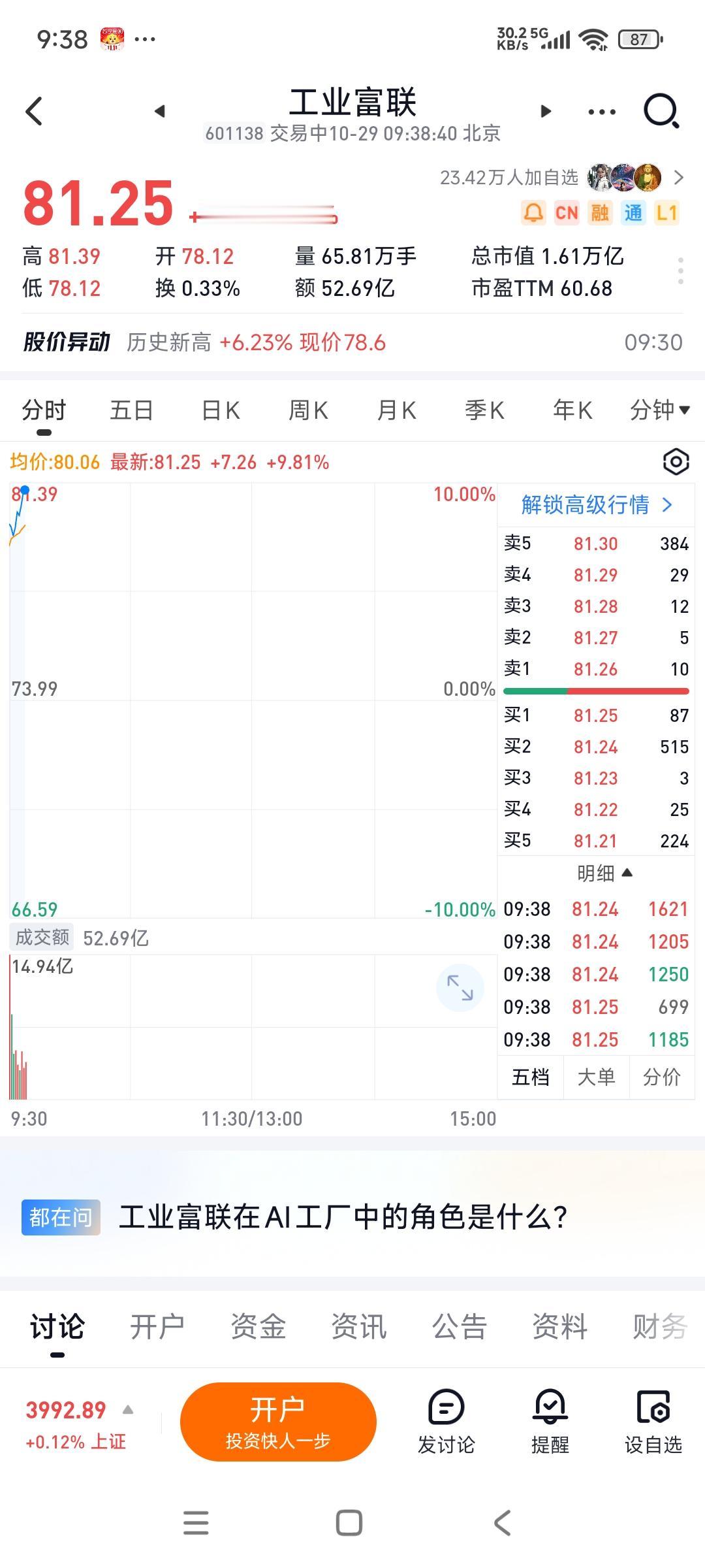 早盘继续走极端行情,超3600只股票下跌情况下,创业板指数依旧能大涨1.6个点... 只要拉一些大权重,指数就跌不下去...像工业富联这种1.6万亿市值的,一个小作文,就能拉到涨停,挺厉害的...创业板也是拉电池,储能等概念权重,其他的都可以不管了[捂脸]
