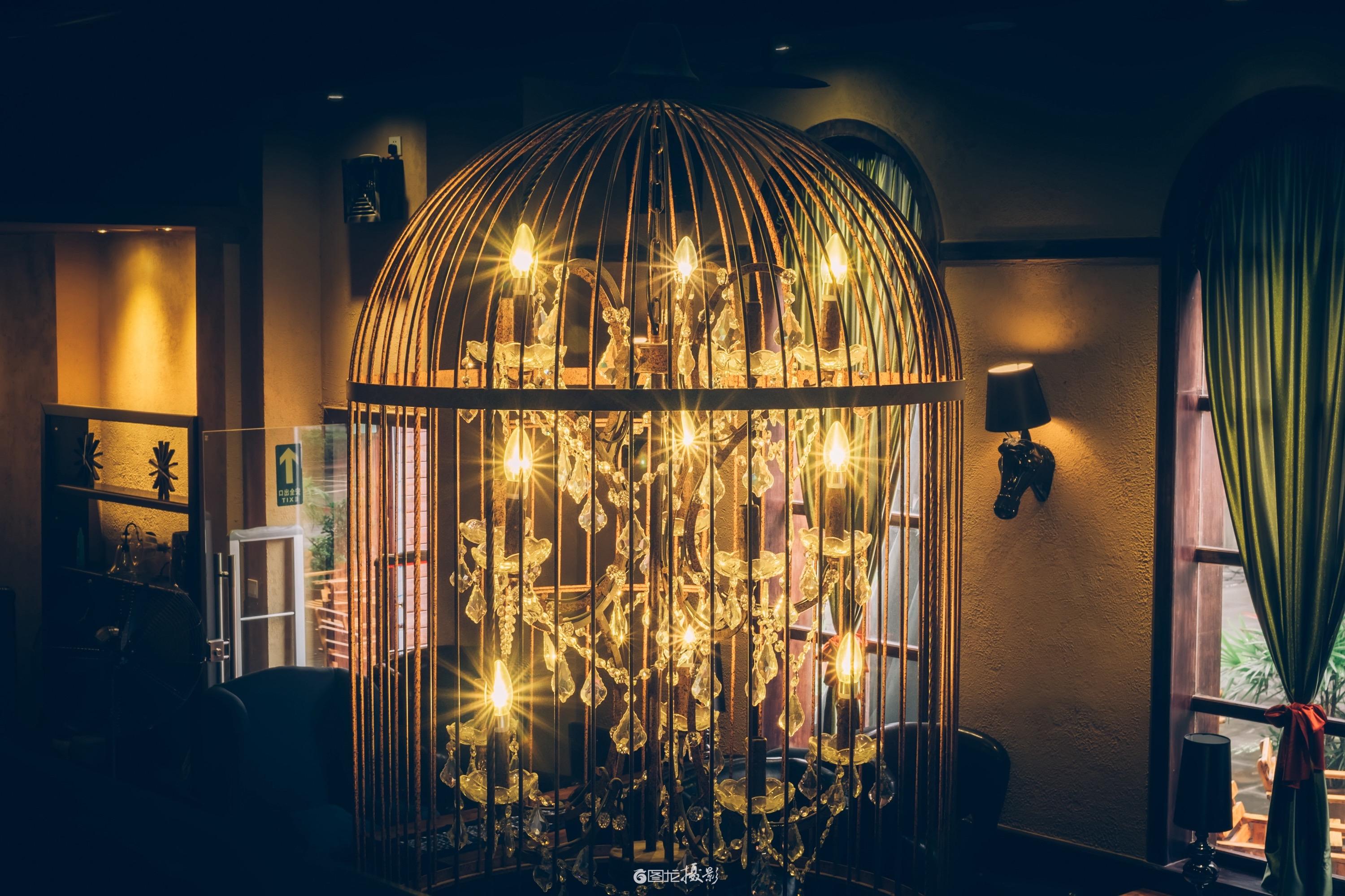 转身踏入室内,复古陈设张力满溢。鸟笼吊灯似艺术珍品,暖光轻洒,水晶饰件璀璨生光,如梦幻泡影般迷人。红砖壁炉、做旧木椅、玻璃与银质餐具组合,细节处尽显“慢生活”的悠然。壁炉似在诉说冬日温暖,木椅承载往昔闲适,餐具等待一场优雅聚会,无一不在劝人放慢节奏,细品生活。