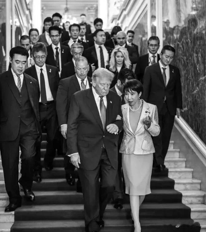 像个小迷妹,高市早苗挽着特朗普胳膊,特朗普演讲动情地把早苗揽在怀里,互动“温馨”。高市早苗果然不凡,以柔克刚“拿捏”特朗普,特朗普答应,日本对美投资可以减少,关税可以降低,总之一切都好说。难怪石破茂死活不愿在当首相,他知道为了日本,与特朗普打交道,他不是合适的的人。
