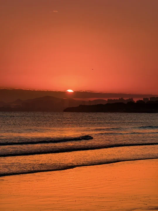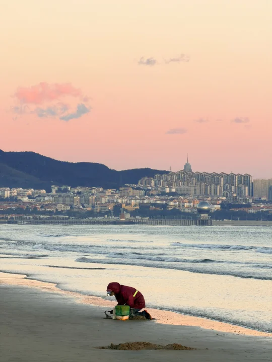 总觉得缺点什么,或许刚开始的那片云挡住了感觉 日出这个季节沙滩你就认准莱山区黄海明珠-天越湾海水浴场就好! 日出时间根据自己手机天气预报app提前一天划动看第二天的日出时间就能看到,建议提前20分钟到 早上很冷,多穿