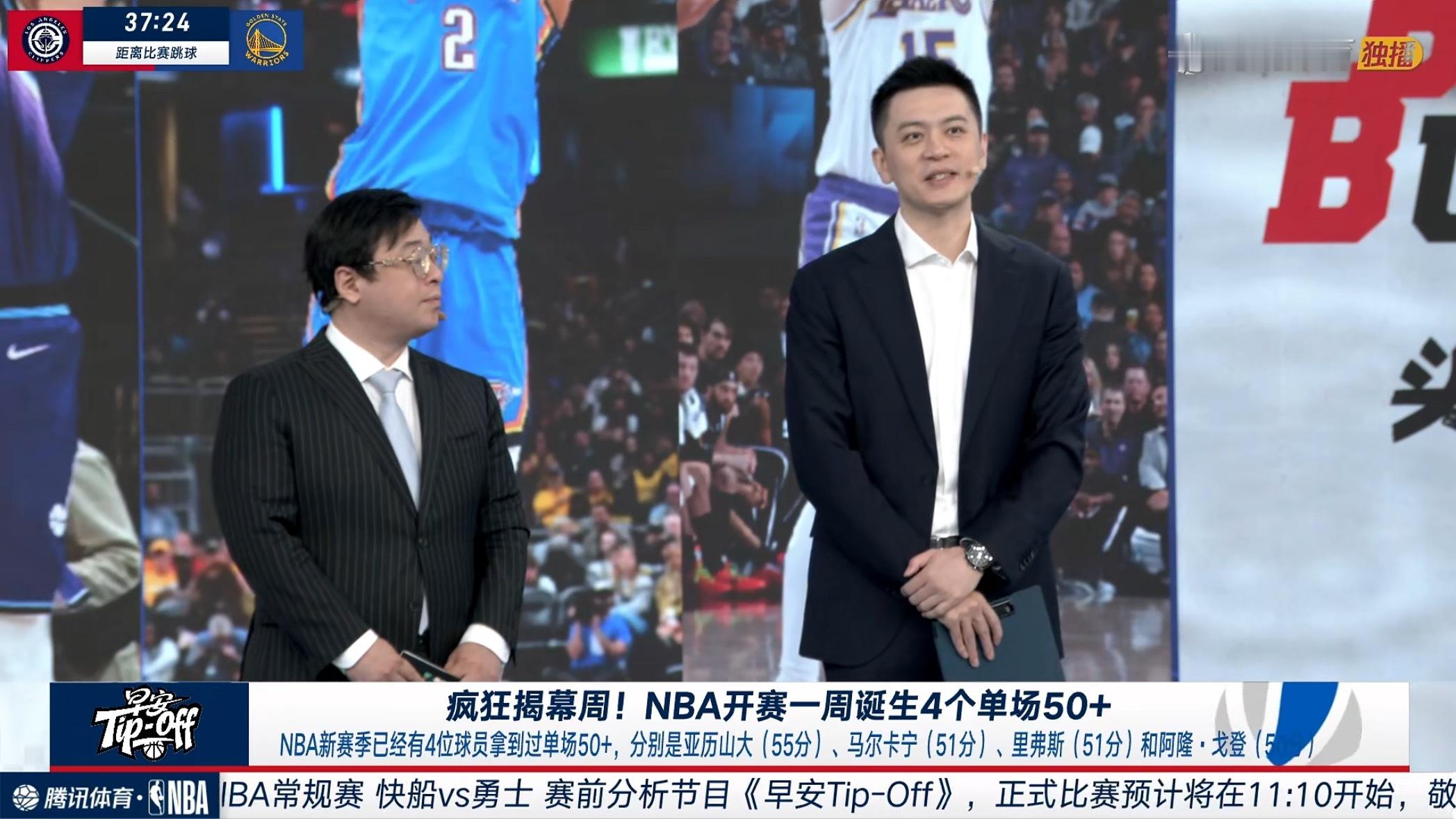 杨导今日将做客腾讯体育解说十一点开始的NBA常规赛勇士对快船