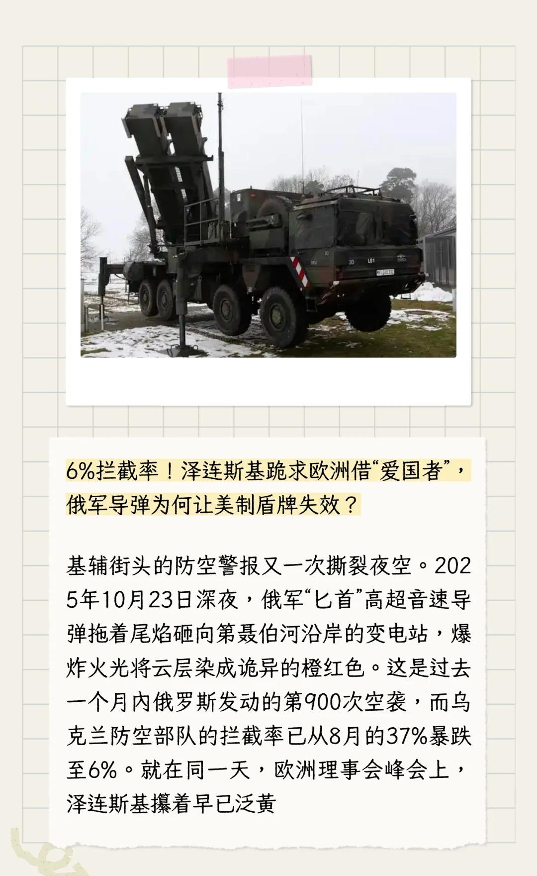 6%拦截率还借?泽连斯基急呼欧洲“借枪”! 导弹库存告急!泽连斯基赌命一求:欧洲的爱国者,先借我们用!热点 军事