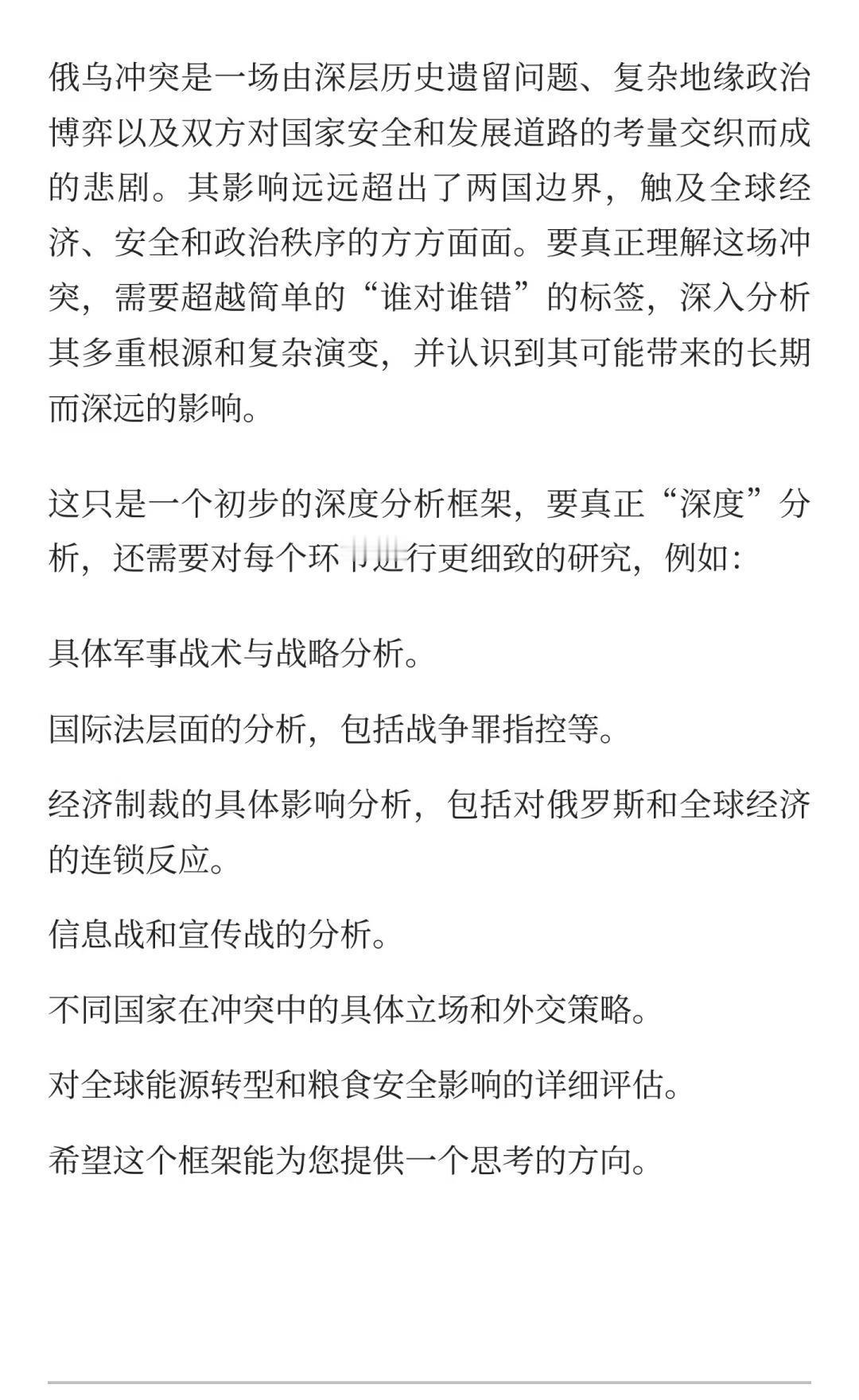 深度分析俄乌冲突 俄乌冲突源于历史恩怨、地缘政治博弈及安全关切,涉及历史、政治、经济、地缘战略等多层面。冲突复杂,影响深远,涉及人道主义、经济、安全及全球秩序。看国际形势知天下大事 和平与发展 愿世界再无战争