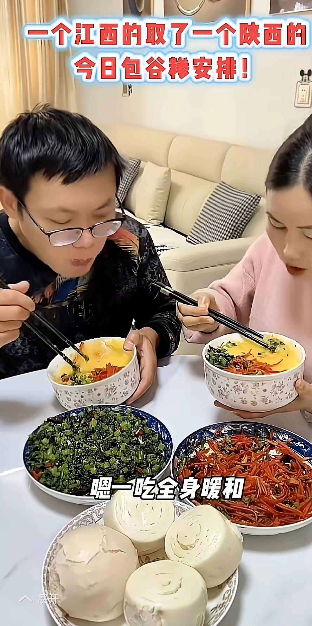 江西老公遇上陕西老婆的包谷糁,这波南北饮食碰撞也太暖了! 江西小伙娶了陕西媳妇,今儿才算真正见识到陕西人的“硬核早餐”——老婆端上两碗包谷糁,还配着馒头、胡萝卜丝,他却懵了:“我想吃粥这是啥呀?” 老婆急着解释“这就是咱陕西的杂粮粥,嘎嘎香”,还手把手教他吃法:菜搁玉米糁上䎭一块,或者就着粥溜着喝,煎煎火火的特暖和。一开始还惦记白粥的老公,最后直接竖起大拇指夸“香”! 其实这哪是吃顿饭啊,明明是南北生活习惯的温柔磨合。陕西关中人冬天就好这口浓稠包谷糁,配着凉拌菜暖身子,而江西老公从疑惑到接受,藏着的全是对老婆的迁就。 你们家有没有这种南北饮食差异的小趣事?比如一方爱吃辣一方爱清淡,最后是怎么互相适应的呀?