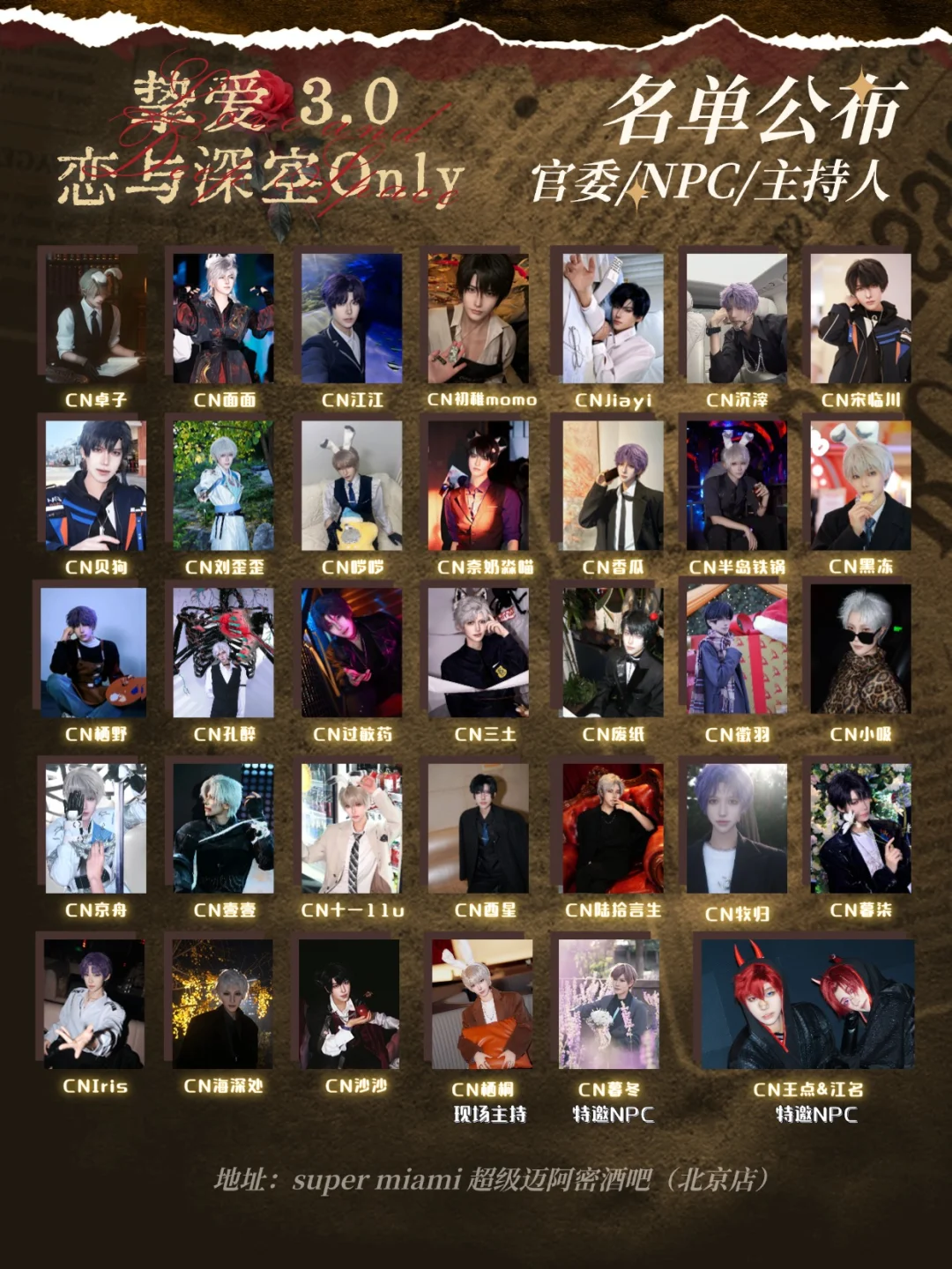我将出席2025年3月8日在北京举办的“挚爱3.0恋与深空Only夜场”,当日角色为祁煜。期待与宝宝们在SuperMiami一起蹦迪! Only(北京3.8售票中)
