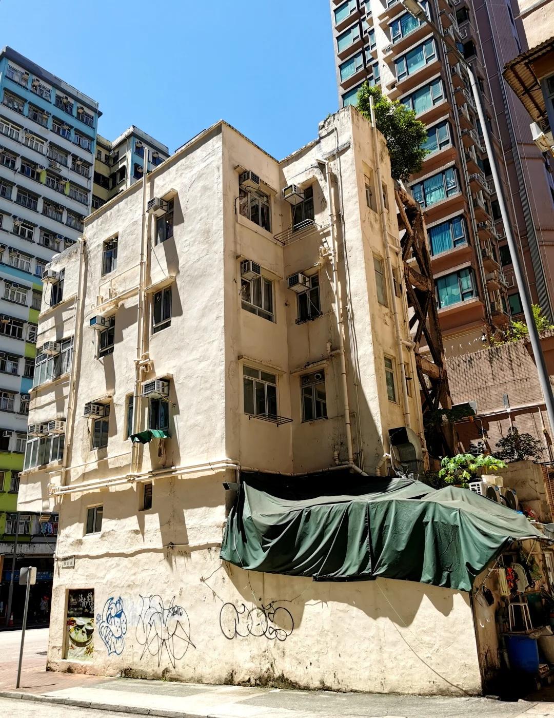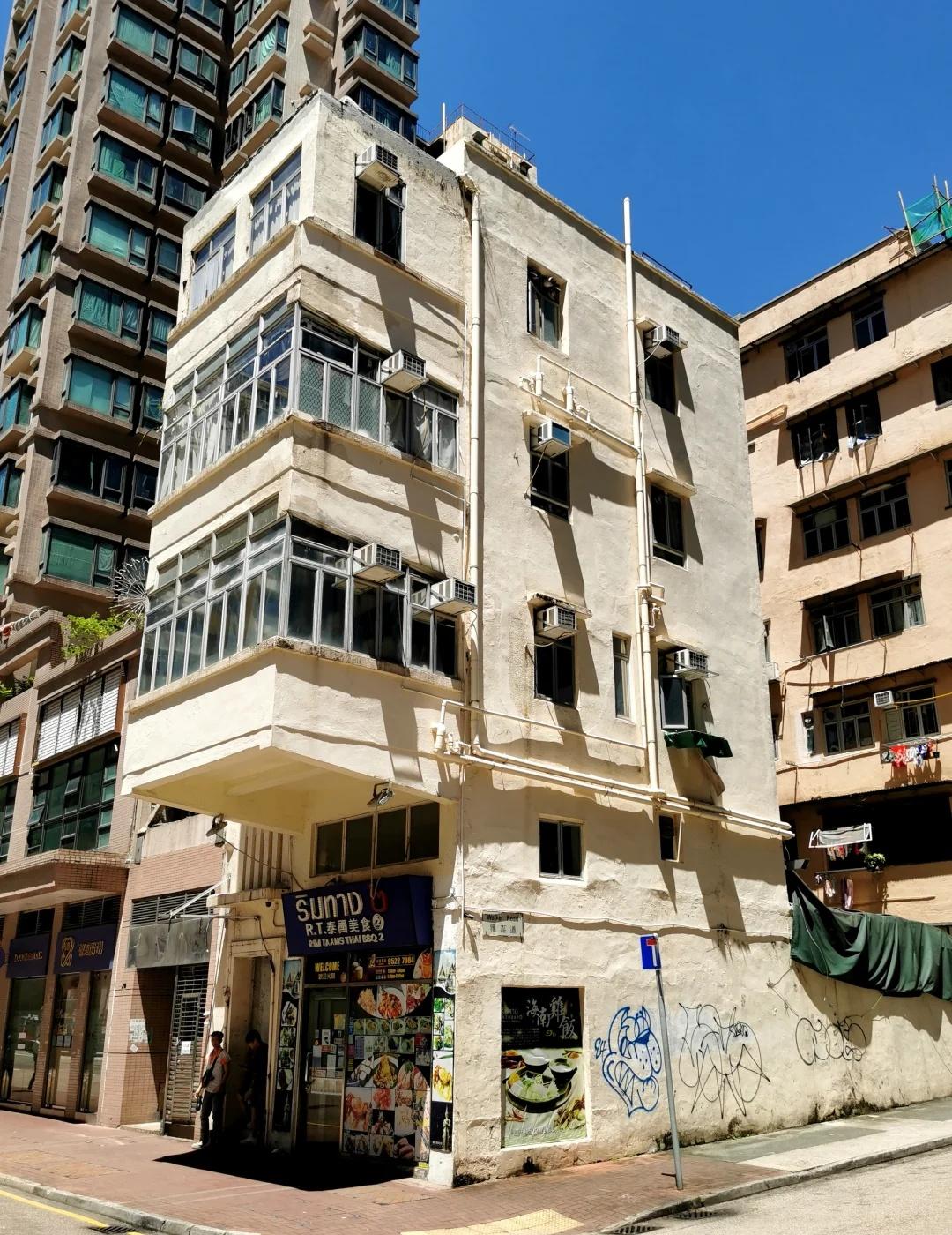在红磡有一栋被拆了半边的旧唐楼依然企硬… 其实为什么有这个情况出现呢? 竟然一栋楼被拆掉一半? 原来是这样的… 如果你有行过香港的旧区的话你应该会留意到有很多旧楼左右对称一样两伙四伙的。其实它们是两栋楼两个门牌,以我所知当年人们为了省钱省空间所以他们就共建楼梯共用楼梯,两座楼起在左右而中间的楼梯就大家出钱起大家一起用。 可以猜想左半边被拆掉的当年一定是被左边新楼的发展商收购了,但右半边的那栋旧楼就因某些原因收不到(这个情况其实对两边都是输家,发展商那边地盘细了起的楼伙数也少了,而余下的那一半面积这么小小地盘根本没有再重建价值将来一定不会有其他发展商再收购它的,所以它就只会越来越旧被世界遗弃在一角),所以发展商也没有办法只好拆掉左半边的那栋作为新地盘的一部份。但如大家在图中见到发展商其实也没有尽用被拆掉那一半的地积,下面只盖了个小商铺面上面还是做了加固措施那怕旧楼会倾斜会倒下。 . 芜湖街104号位于红磡芜湖街104号。入伙日期由06/1954开始。芜湖街104号提供3个单位。芜湖街104号的实用面积为584呎。 资料