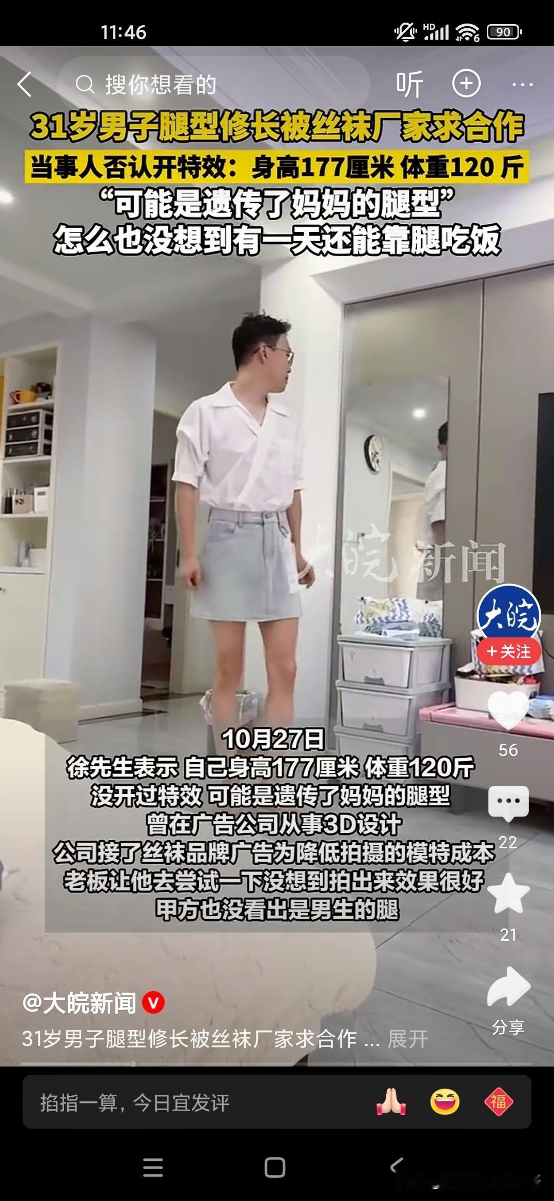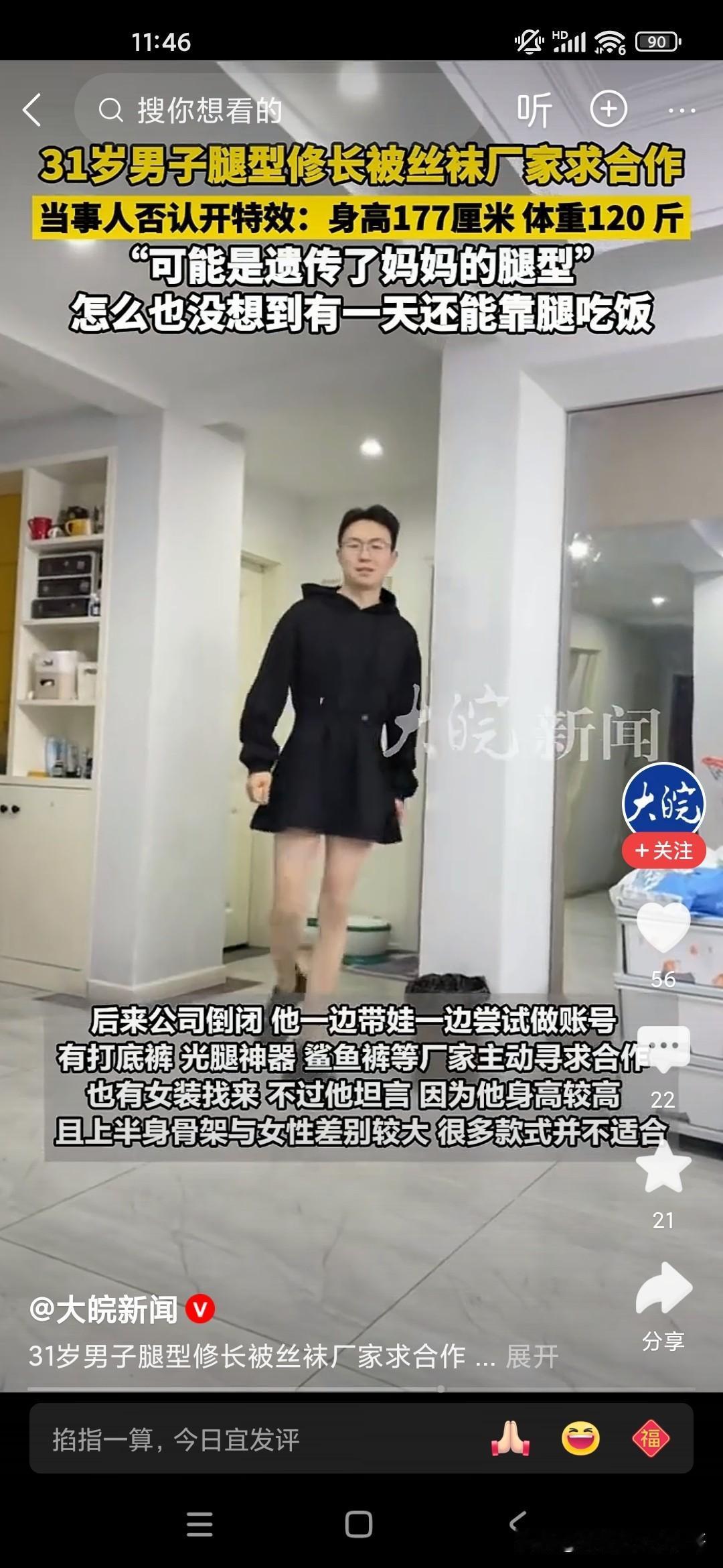 想不到男生只要长得好看,也有女生丝袜厂愿意与他合作,这名男子可能一辈子也没有想到,就是因为自己的腿比较修长,身高有1米77左右,腿长一米以上,丝袜厂居然想和他合作,他一辈子也没有想到,就是因为腿型长得比较好看,长得倍儿直,竟然本来是应该是女生做的事儿,然后让男生去做,因为别人说世界上顶级的模特大师呀或者是服装设计师呀都是男生,因为他们说舞蹈很多男生跳的比女生都好,而且那种没味,那种媚劲儿啊,只有男生才可以跳的出来,这是这位男生当他穿上这个丝袜,当他穿上女士服装的时候,的确让别人惊艳了一大跳!