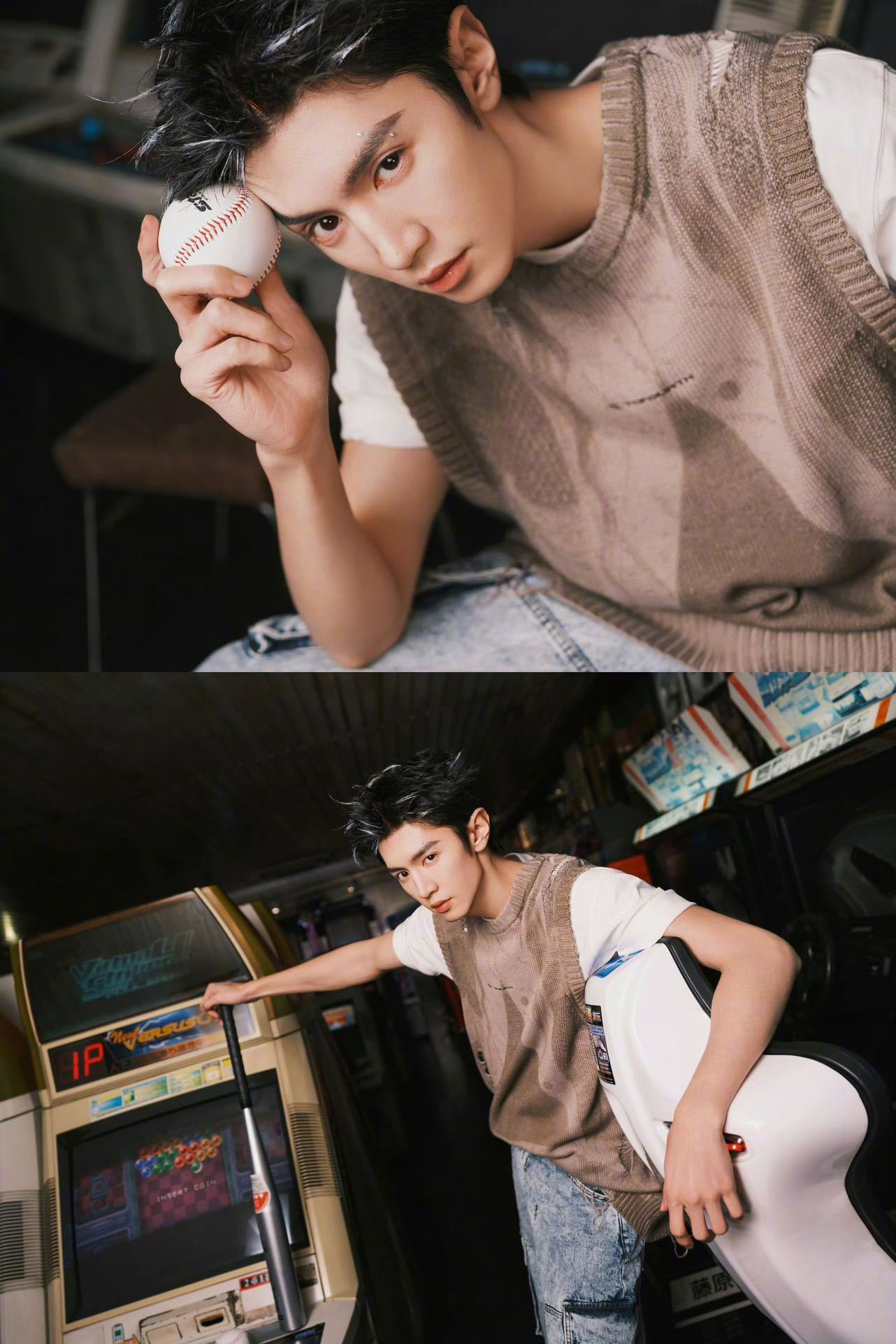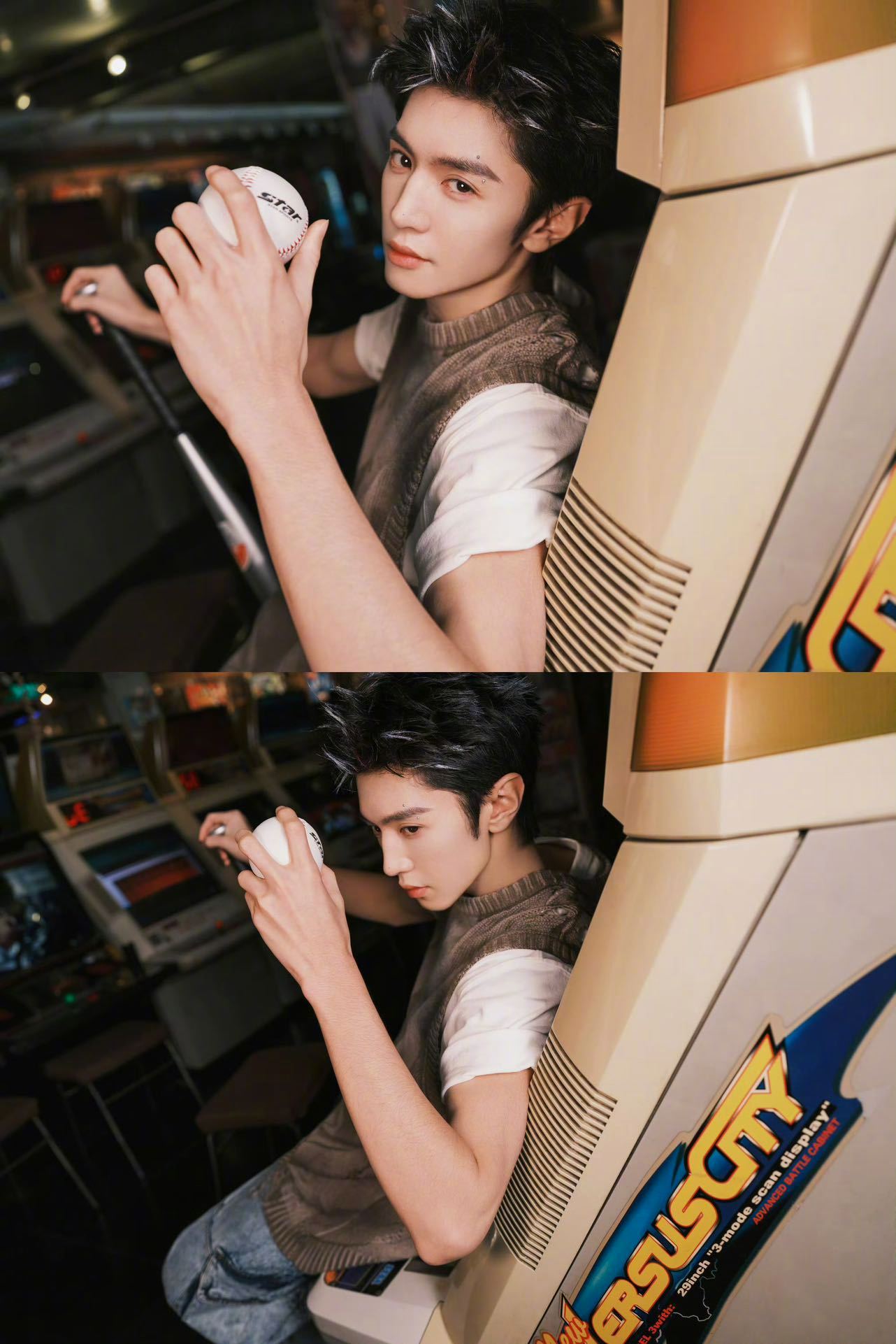 陈哲远今天是热血番陈哲远生日零点放大招!游戏厅氛围感写真燃到上头,白色挑染+棒球棍,帅得极具攻击性,这就是热血番里自带BGM的天降男主吧