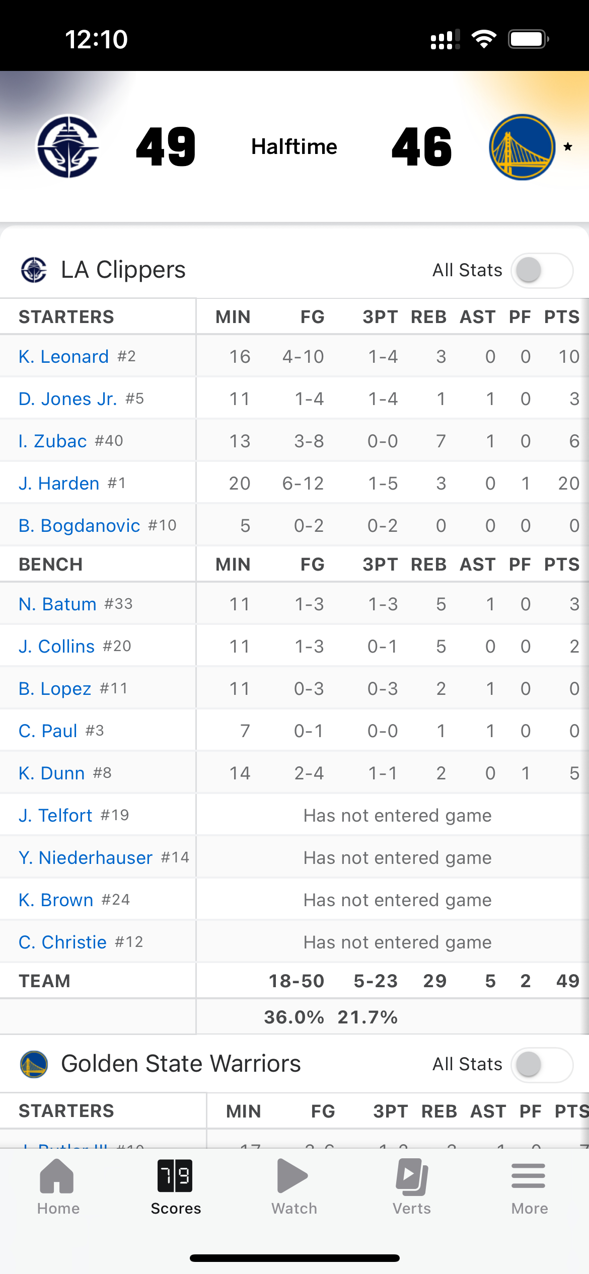 半场落后3分,第二节后半段感觉谁也投不进,不会是累了吧[晕]金州勇士