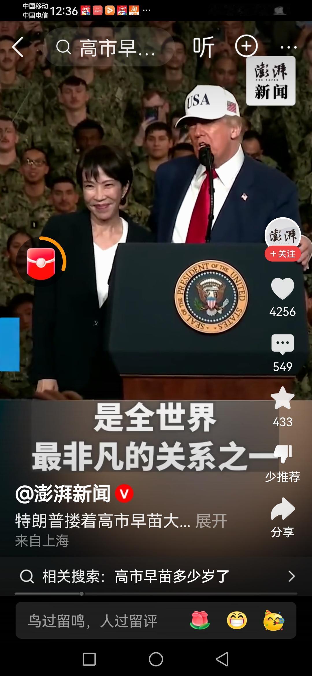 10月28日这事儿可太有看点了。特朗普在驻日美军横须贺基地的航母上演讲,伸手就搂住了日本首相高市早苗。他还说美日“不打不相识”,把高市早苗夸成日本第一位女首相。 高市早苗那反应绝了,被这么一夸高兴得跳起来转圈,还举手向在场美国军官挥手致意。当天早些时候他们在东京迎宾馆会谈,估计安保领域防卫费增额这些争议点没少聊。之后又去视察航母,不知道这一搂一夸背后,美日之间又有啥新的盘算呢。