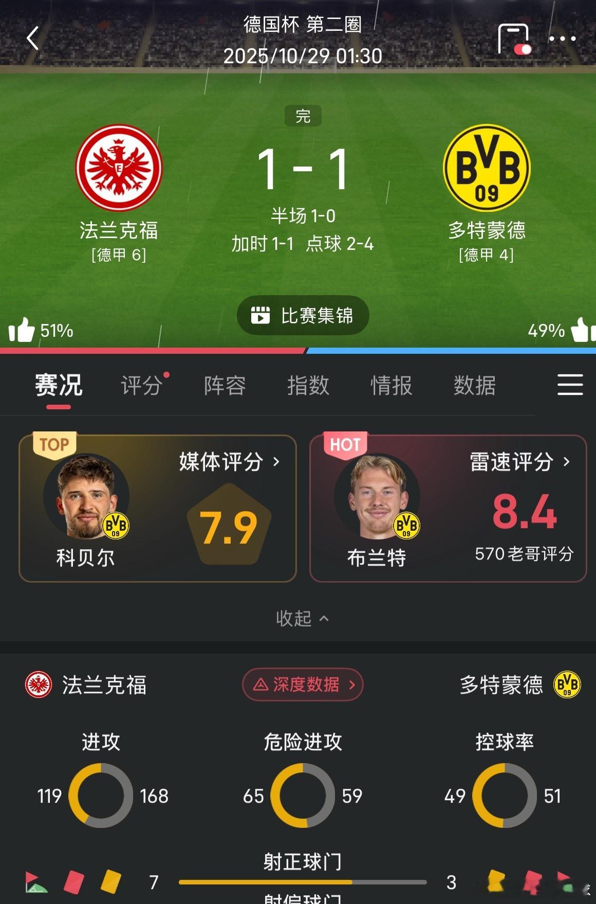 004 德国杯 法兰克福vs多特蒙德法兰克福目前联赛第六,上周末联赛主