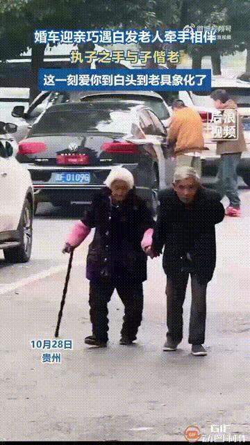 贵州一处街头,一对白发夫妻正在散步,奶奶腿脚不便已经拄着拐杖,爷爷也佝偻着身子,但即便这样,他们还是牵着彼此的手,在慢慢地走向前方,谁料这时身后转弯处,突然开过来一辆婚车,在两位老人后面徐徐跟随,并没有催促,网友看完这段视频,都觉得这一幕真的是太美好了,就像是老一辈人的爱情在引领着一对新人走向幸福之路,这两位老人虽然年龄大了,但却真正诠释了“白头到老”的意义,而婚车在他们身后徐徐跟随,也代表着这对新人的婚姻也将幸福美满,多么美好的寓意啊,真是太让人动容了。大家怎么看呢?