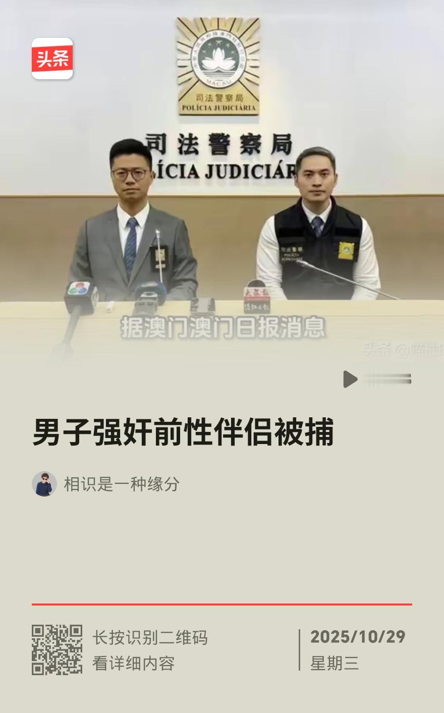 澳门酒店惊魂1小时!男子强留前性伴施暴,烟灰盅砸头还勒颈,铁证前仍嘴硬 澳门新口岸区一家酒店里,34岁内地装修工吴某把前性伴锁进房间,不仅强奸还拿烟灰盅砸头、用充电线勒颈,整个过程持续1小时,事主浑身是伤才得以求救,可吴某被捕后竟还拒绝认账。 这事得从去年说起,事主在内地夜场认识吴某,后来发展成不正当关系。但吴某控制欲极强,事主今年2月提出断联,却一直被他纠缠,甚至被蹲守跟踪。25日凌晨5点多,事主和姐姐在酒店餐厅吃早餐时撞见吴某,对方直接要挟:“跟我去房间,不然就告诉你老公咱俩的事。” 事主怕家庭破裂,只能跟着进房,结果遭吴某强奸。她偷偷给姐姐发求救消息被发现,吴某当场暴怒,拿玻璃烟灰盅砸她头,鲜血直流,又用充电线勒她脖子,直到事主哀求才松手。清晨6点,姐姐带治安警赶到,救下满脸是血、浑身瘀伤的事主。 经检查,事主头部缝了5针,还有脑震荡和多处挫伤。面对监控、验伤报告等铁证,吴某仍狡辩“是自愿的,伤是她自己弄的”,最终被司警以多项罪名移交检察院。 遇到控制欲强的纠缠者,别像事主起初那样忍,及时报警才是保护自己的关键。男性强奸案 澳门的迷惑行为 广东强奸案