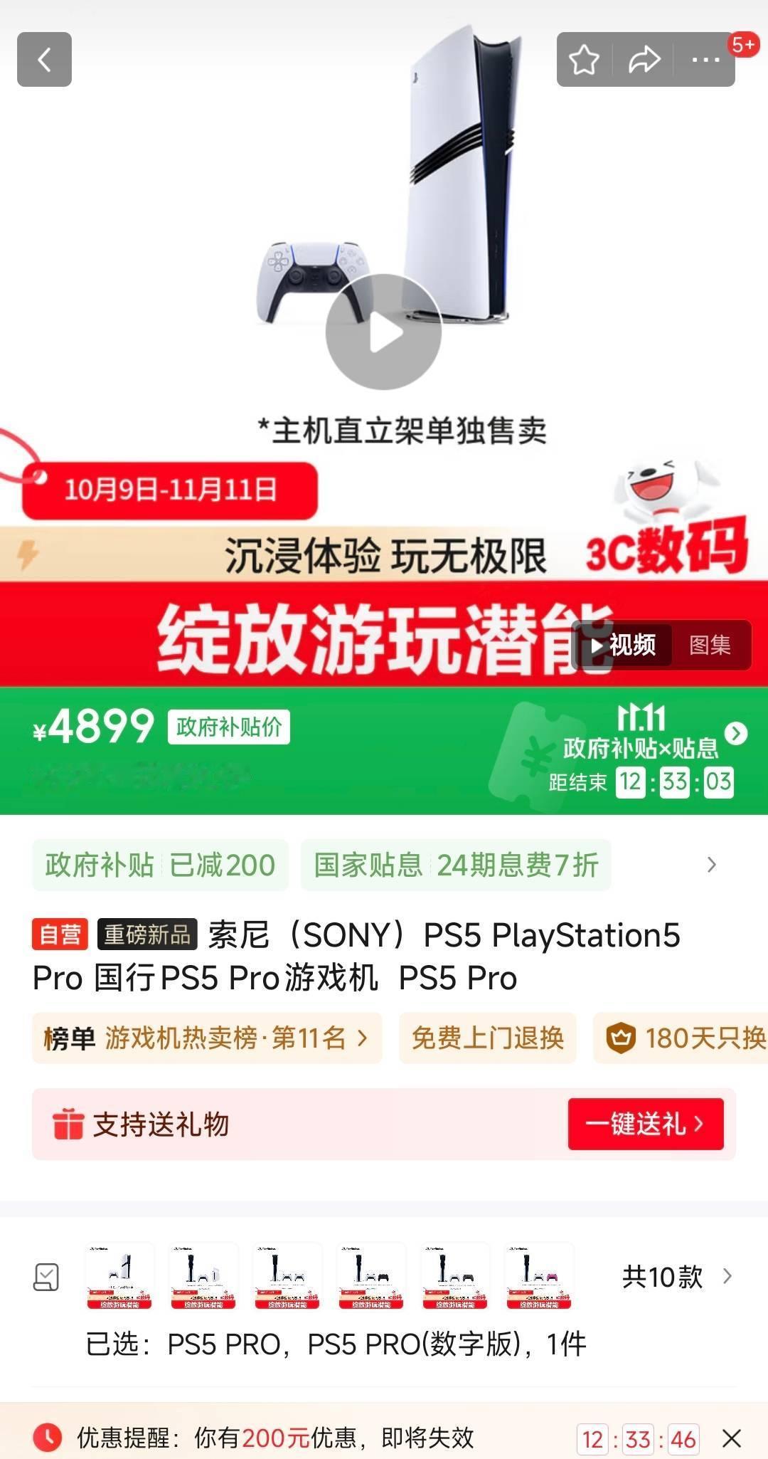 国行PS5 Pro现已上市,京东确认有补贴,补贴后价格4899元。此前,官方确认国行PS5 Pro双11折扣价为5099元。